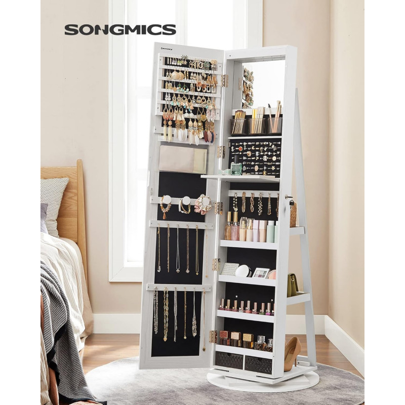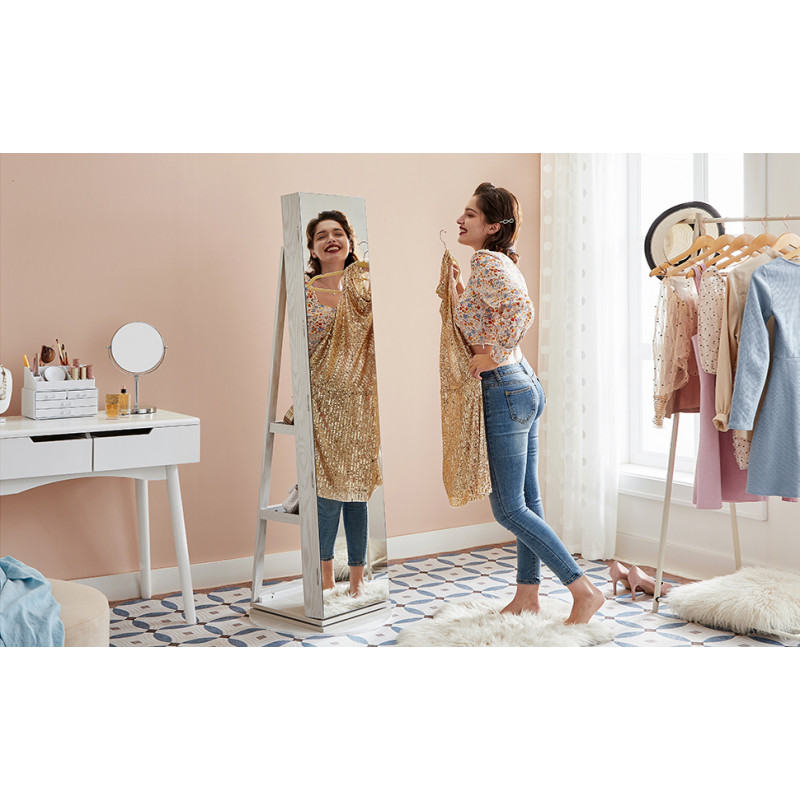 Oglinda frumoasa: Acest dulap de bijuterii are o oglinda pe toata lungimea fara rama de 37 x 155 cm, astfel incat sa va puteti admira tinuta de sus pana jos in oglinda. Incepeti fiecare zi cu un look frumos!