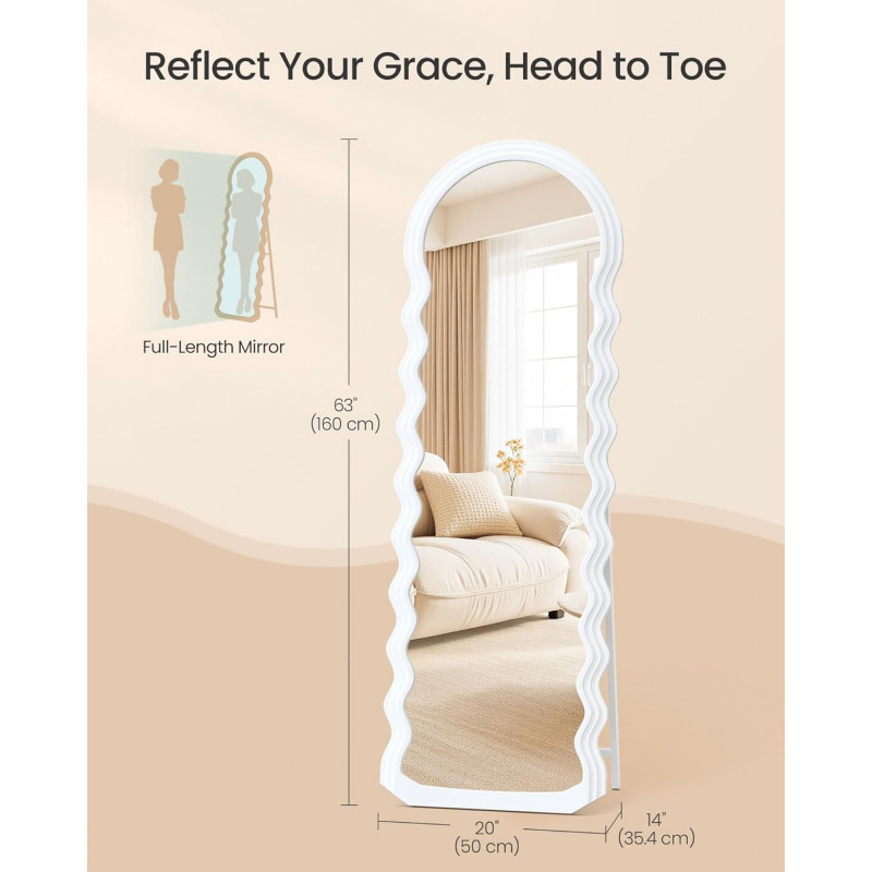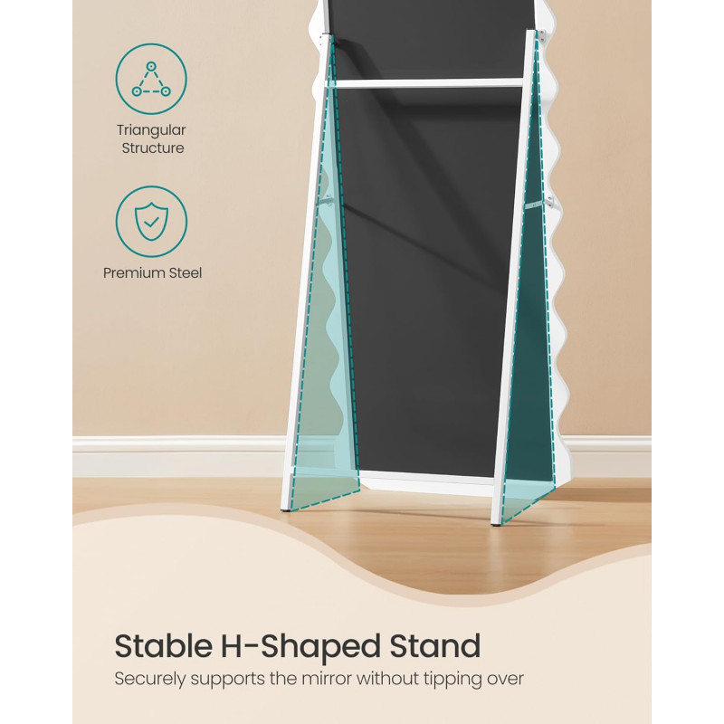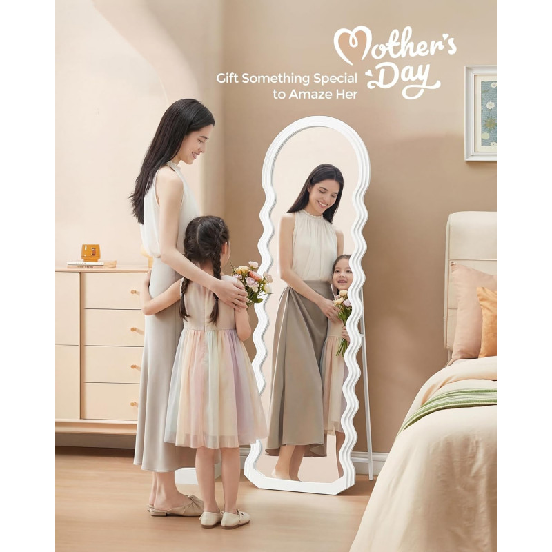Scurta descriere Oglinda de podea SONGMICS cu design ondulat aduce un plus de stil si originalitate in orice incapere. Dimensiunea generoasa ofera o vedere completa, iar forma neobisnuita transforma oglinda intr-un element decorativ modern. Structura stabila si materialele de calitate asigura utilizare sigura si durabila.