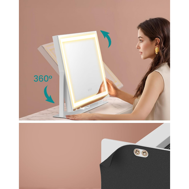 Scurta descriere Oglinda de machiaj cu iluminare LED este ideala pentru rutina zilnica de infrumusetare. Ofera 3 tipuri de lumina si reglare a intensitatii pentru un machiaj precis, indiferent de momentul zilei. Design modern, stabil, cu baza metalica rezistenta si finisaj alb mat elegant.