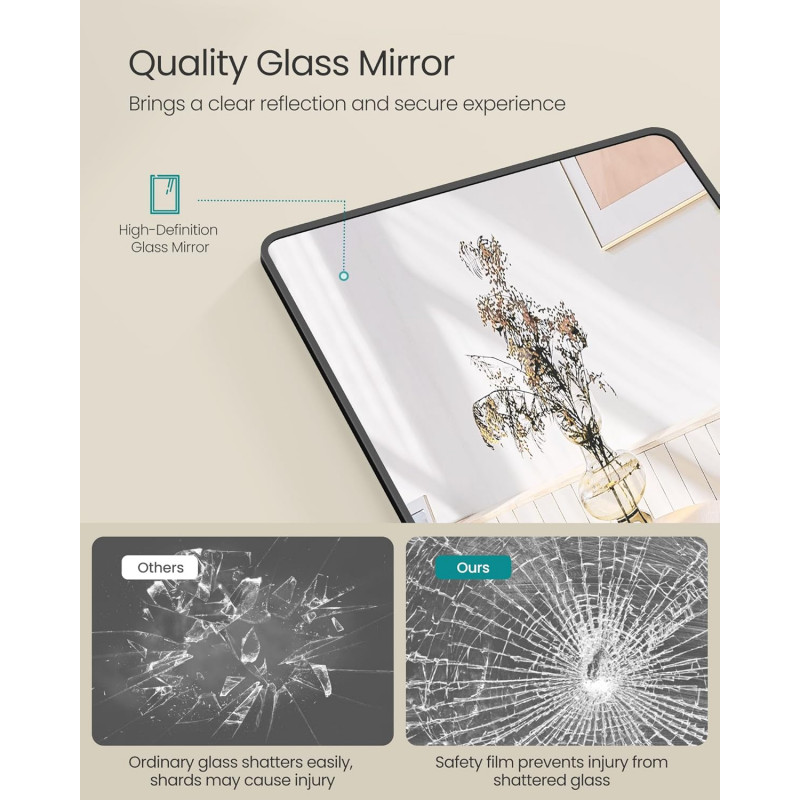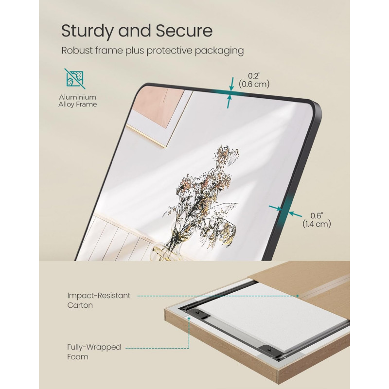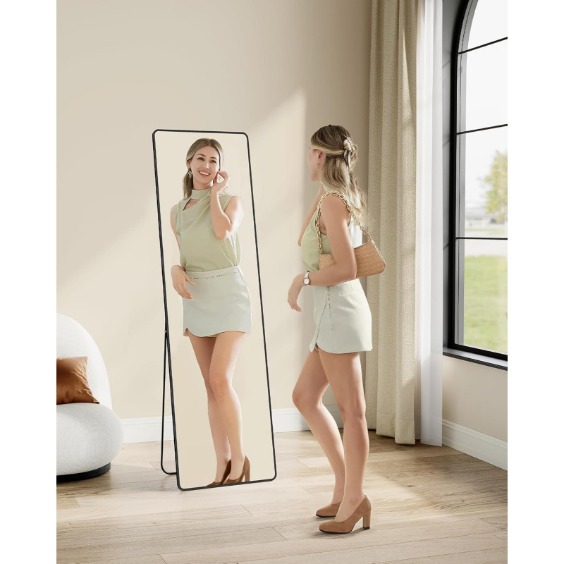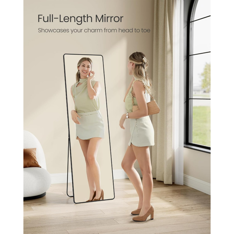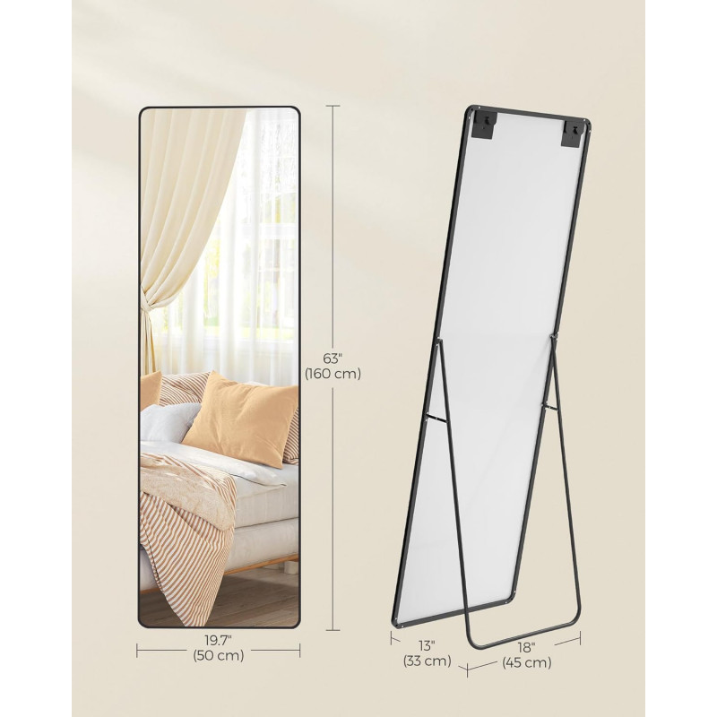Aceasta oglinda de podea este o piesa versatila si moderna, ideala pentru dormitor, hol, dressing sau studio. Cu dimensiunea generoasa de 160x50 cm , permite o vedere completa a tinutei din cap pana-n picioare, fara distorsiuni. Cadrul subtire din aluminiu negru adauga un aer elegant si discret, potrivit in decoruri minimaliste sau moderne. Sticla este securizata pentru un plus de siguranta in utilizare, fiind rezistenta la socuri si zgarieturi. Poate fi sprijinita direct pe podea sau asezata langa un perete, fara fixare permanenta, ceea ce o face usor de mutat in functie de nevoi. Este ideala pentru uz personal sau profesional (salon, showroom, studio foto).