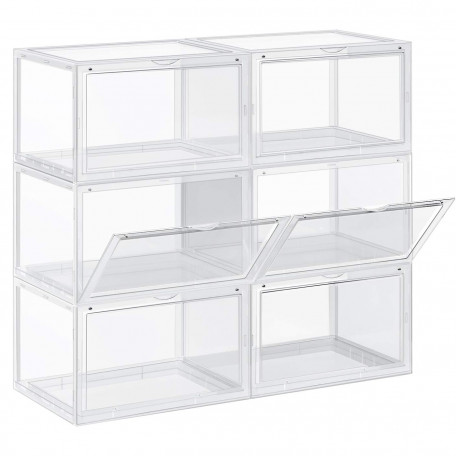 Scurta descriere: Pastreaza incaltamintea organizata si vizibila cu acest set de 6 cutii transparente. Designul cu usa frontala si sistemul stivuibil economisesc spatiu si ofera acces rapid la fiecare pereche.