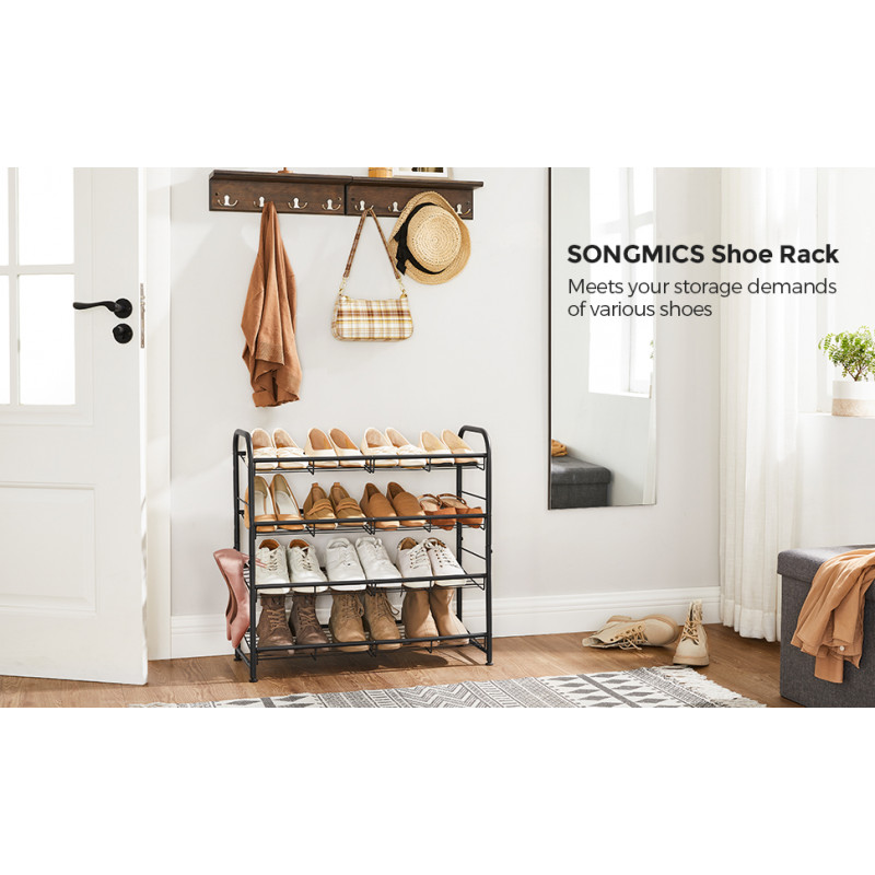 Sarcina statica per raft: 5 kg Despre acest articol Puteti alege sa asamblati rafturile plate sau in unghi pentru un acces mai usor la pantofi. De asemenea, puteti suprapune 2 rafturi pentru pantofi pentru un spatiu de depozitare suplimentar.Cu un spatiu amplu intre rafturi, tocurile inalte si adidasii cu varf inalt pot gasi un loc perfect aici, pe acest raft pentru pantofi. Sau, puteti indeparta un nivel pentru cizme si mai inalte.Acest organizator de pantofi stivuibil este prevazut cu manere arcuite solide, ceea ce va permite sa il deplasati fara efort oriunde preferati.Cu un cadru solid din otel si picioare reglabile, acest raft pentru pantofi ofera un suport puternic si stabil (10 kg de incarcare pe fiecare raft).Datorita