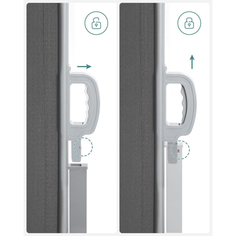 Dimensiunea produsului: 160 x 350 cm (H x L) Tesatura de copertina din poliester acoperit cu PVC de 220 g/m² este rezistenta la stropire si la soare, fiind perfecta pentru protejarea intimitatii si blocarea soarelui datorita. De asemenea, este rezistenta la decolorarea culorilor.Caseta acestui marchizon lateral si stalpul de sustinere sunt fabricate din aliaj de aluminiu de inalta calitate, in timp ce suruburile sunt fabricate din aliaj de zinc-nichel rezistent la rugina si de lunga durata.Datorita