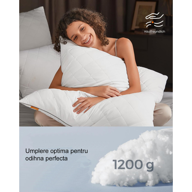 Ingrijire usoara: Aceasta perna de pat este lavabila la masina si poate fi uscata pana la 60°C. Astfel, ramane proaspata si curata, isi pastreaza moliciunea si pufosenia si asigura o ingrijire usoara pentru mai putin stres in viata de zi cu zi.