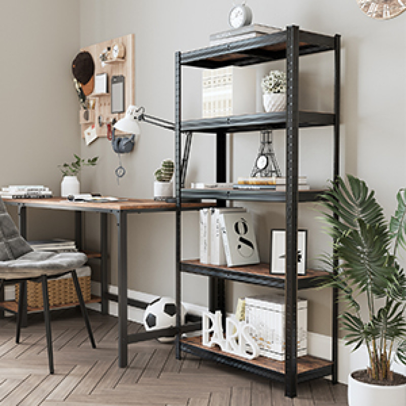 Aspect rustic: Rafturile sunt finisate cu granulatie de lemn rustic maro, adaugand un efect elegant oricarui spatiu, astfel incat sa puteti spune la revedere aspectului plictisitor. Divizat in 2 unitati: Unitatea de rafturi poate fi impartita in doua rafturi joase separate, unul plasat in bucatarie ca suport pentru cuptorul cu microunde, celalalt in birou pentru a tine carti, plante, imprimanta si multe altele.
