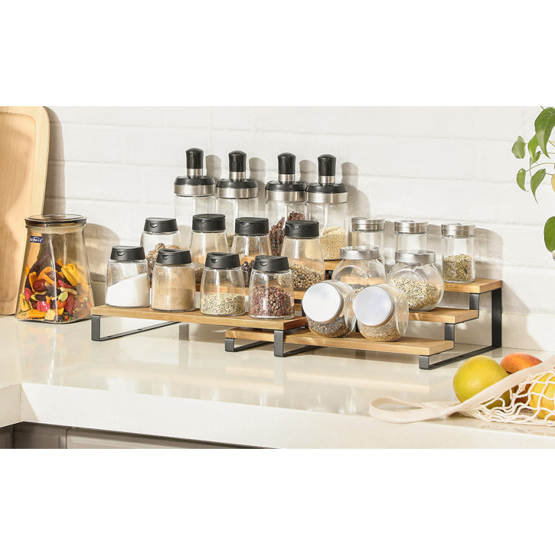Max. Capacitate de incarcare statica a fiecarui nivel: 3 kg Despre acest articol Cu 6 nivele, va tine condimentele la indemana si ofera cu usurinta aspectul ordonat la care visati.Cu un design extensibil, este usor sa ajustati lungimea setului de organizare a condimentelor pentru a se potrivi cu diverse spatii sau sa il separati in 2 rafturi pentru locuri diferite - personalizati-va depozitarea si maximizati spatiul dvs.Acest suport pentru condimente ofera oportunitati pentru diverse sticle de condimente din bucataria dvs.Ce primesti: Un set de doua organizatoare de condimente, cu un cadru solid, un design stivuibil si extensibil, asamblare usoara si o modalitate simpla de a dubla sau chiar tripla spatiul de depozitare pentru mai multe sticle si cutii de conserve.