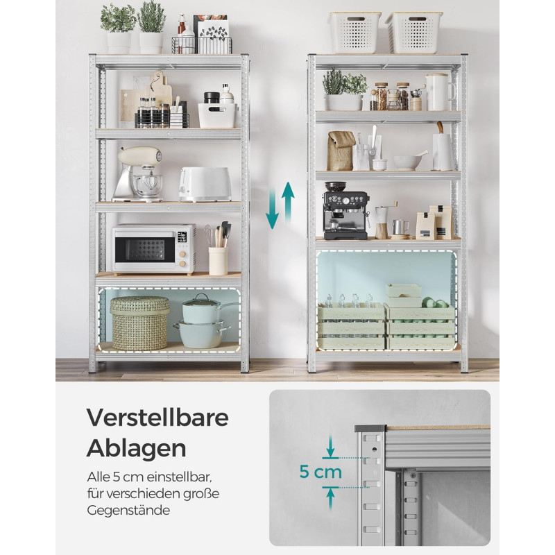 Capacitate de incarcare statica totala: 875 kg Despre acest articol Aceasta unitate de rafturi pentru garaj este realizata cu un cadru din otel, iar fiecare nivel poate sustine pana la 175 kg. Kitul anti-inclinare inclus ajuta la atasarea raftului la perete, facandu-l mai stabil si mai sigur.Aceasta unitate de rafturi metalice poate fi impartita in 2 unitati separate pentru a se potrivi nevoilor dvs. de depozitare si spatiului dvs.; odata impartite, acestea functioneaza, de asemenea, excelent ca bancuri de lucru cu depozitare. Fiecare nivel poate fi ajustat cu usurinta la fiecare 5 cm.Cu dimensiuni de 40 x 90 x 180 cm si o capacitate de incarcare totala de 875 kg, aceasta unitate de rafturi poate fi utilizata intr-un garaj, depozit, pivnita sau camera de utilitate pentru a va organiza toate uneltele si echipamentele.Cu un design cu interblocare si