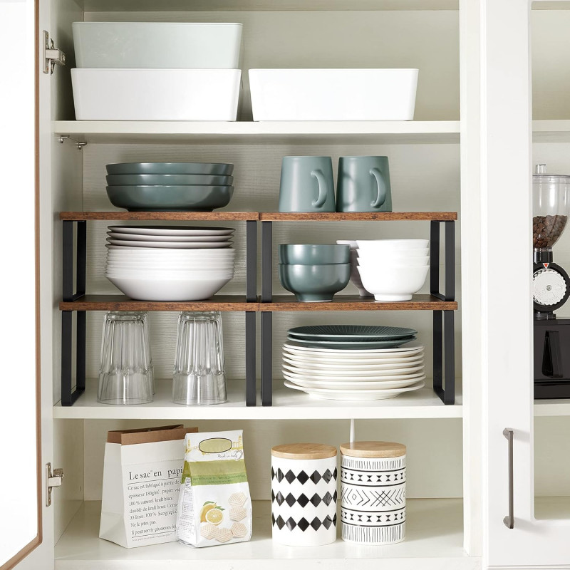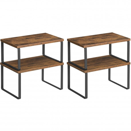 Scurta descriere: Optimizeaza spatiul din bucatarie cu acest set de 4 rafturi modulare SONGMICS. Cu un design versatil si modern, pot fi amplasate pe blat, in dulapuri sau camara. Fie ca le suprapui, le aliniezi sau le asezi in forma de L, aceste rafturi robuste din metal si PAL ofera sustinere stabila pentru borcane, condimente sau electrocasnice mici.