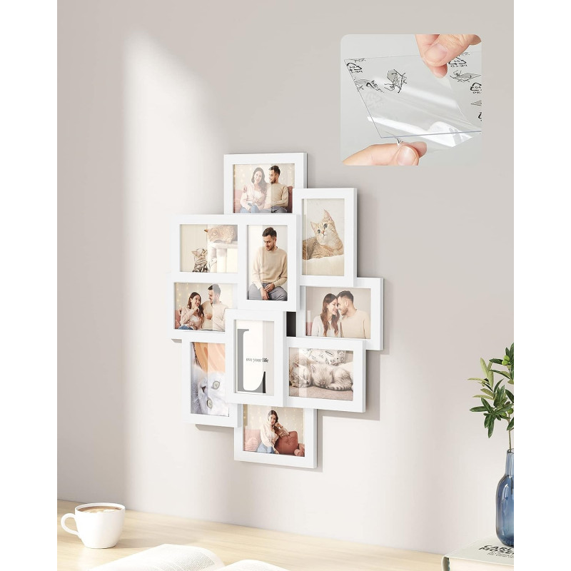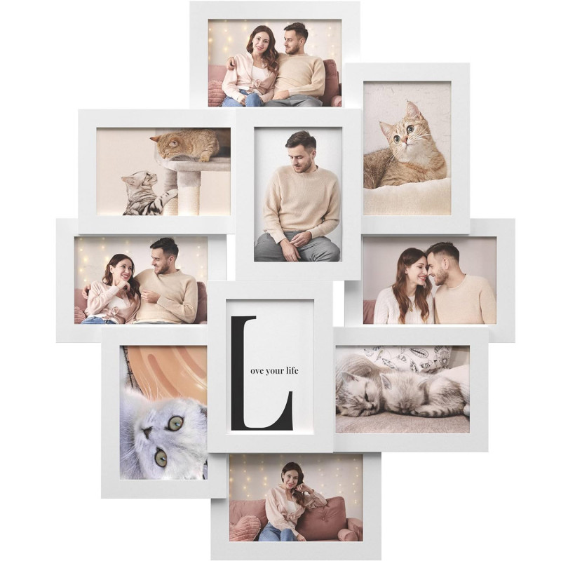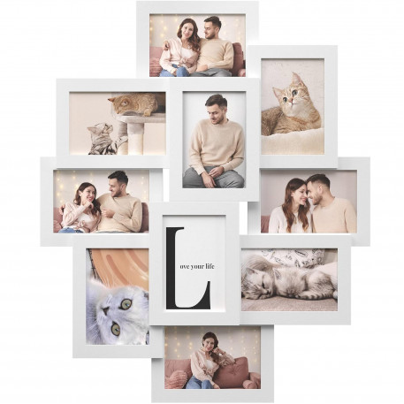 Instructiuni Aceasta rama foto se va completa perfect cu interiorul dumneavoastra. Rama multipla va putea gazdui pana la 10 fotografii de familie, vederi frumoase, citate motivationale preferate si grafica minimalista. Asamblare usoara si convenabila pentru schimbarea fotografiilor - Pur si simplu rotiti clemele mici de pe spate; este inclus un manual de