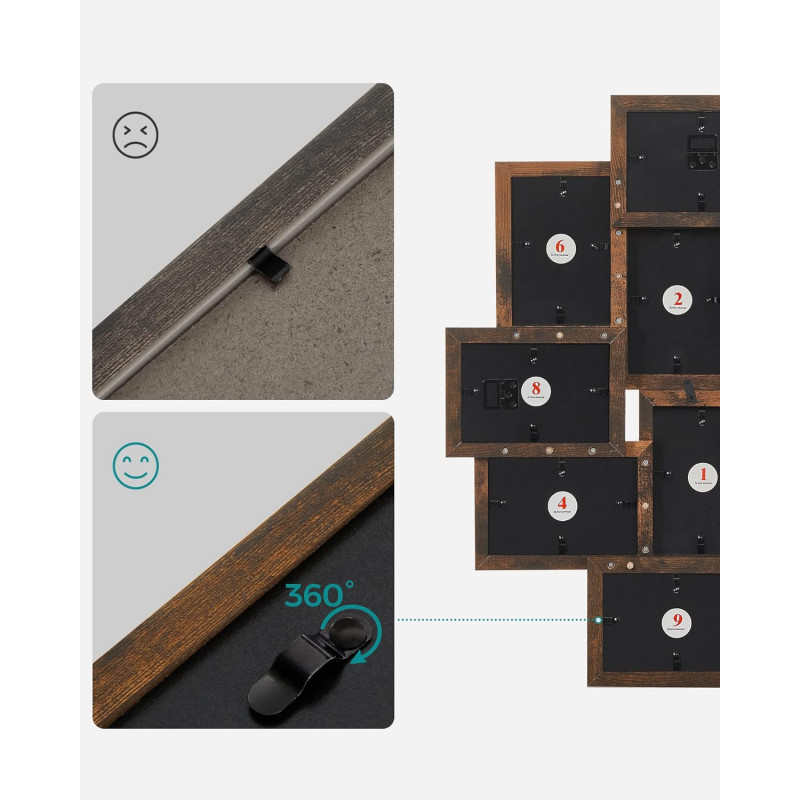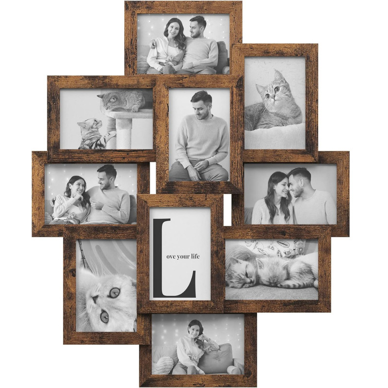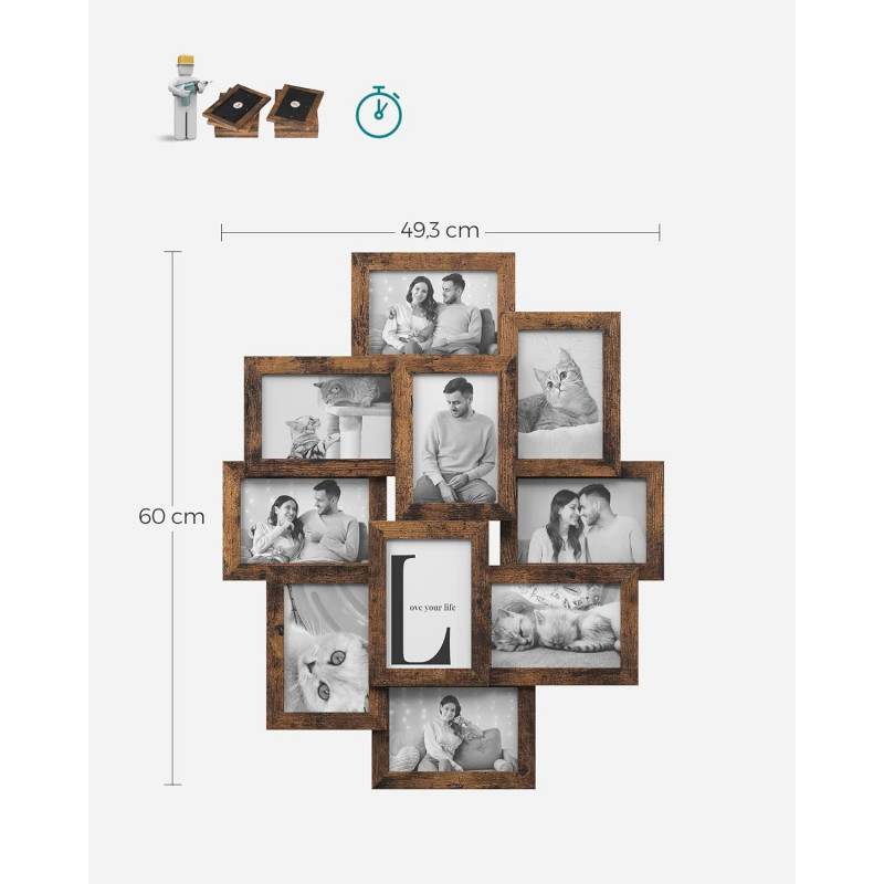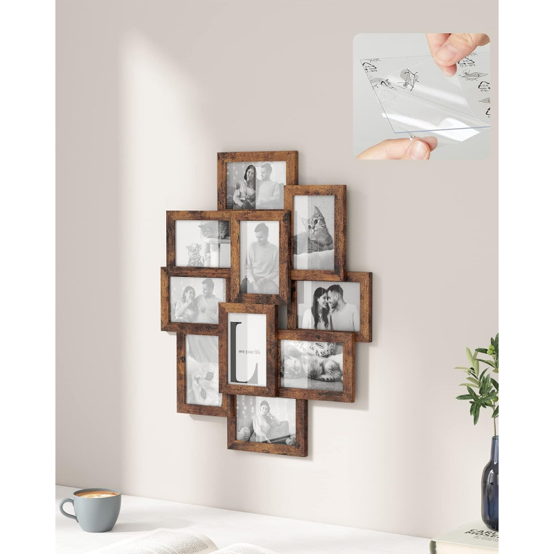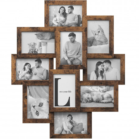 Greutatea produsului: 1,8 kg Despre acest articol De la chipurile celor dragi pana la momentele minunate petrecute cu prietenii si reuniunile de familie, aceasta rama foto colaj va permite sa afisati o serie de momente minunate. Dispune de 10 rame, fiecare fiind perfect dimensionata pentru fotografii 4x6.Realizate din MDF gros si panouri transparente PS (polistiren), aceste rame foto colaj asigura afisarea clara a fotografiilor dvs. si, in acelasi timp, previn ruperea in timpul utilizarii.Avand butoane de rotire pe spate, aceste rame colaj de perete permit schimbarea fara efort a fotografiilor, permitandu-va sa va actualizati afisajele cu noi amintiri oricand doriti, fara nicio complicatie.Cu