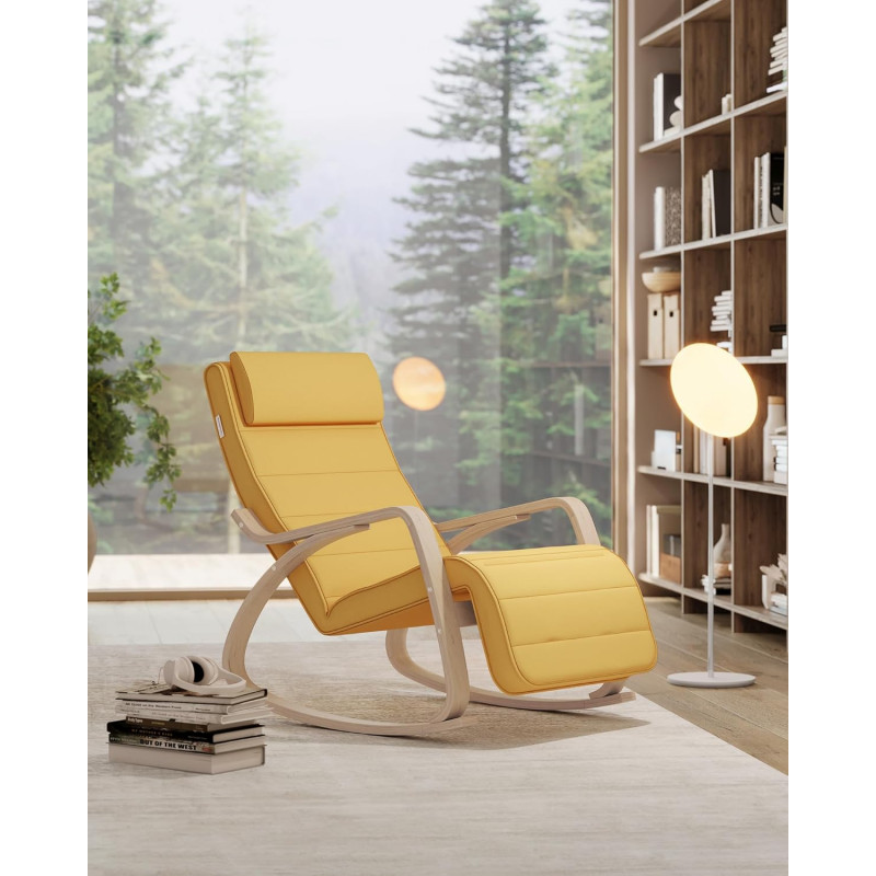 Scurta descriere Scaunul balansoar SONGMICS este conceput pentru momente de relaxare si confort in dormitor, living sau birou. Structura solida din lemn de mesteacan si metal asigura stabilitate, iar sezutul si tetiera captusite cu spuma ofera sustinere optima. Suportul pentru picioare reglabil in mai multe pozitii permite adaptarea usoara pentru citit, odihna sau relaxare.