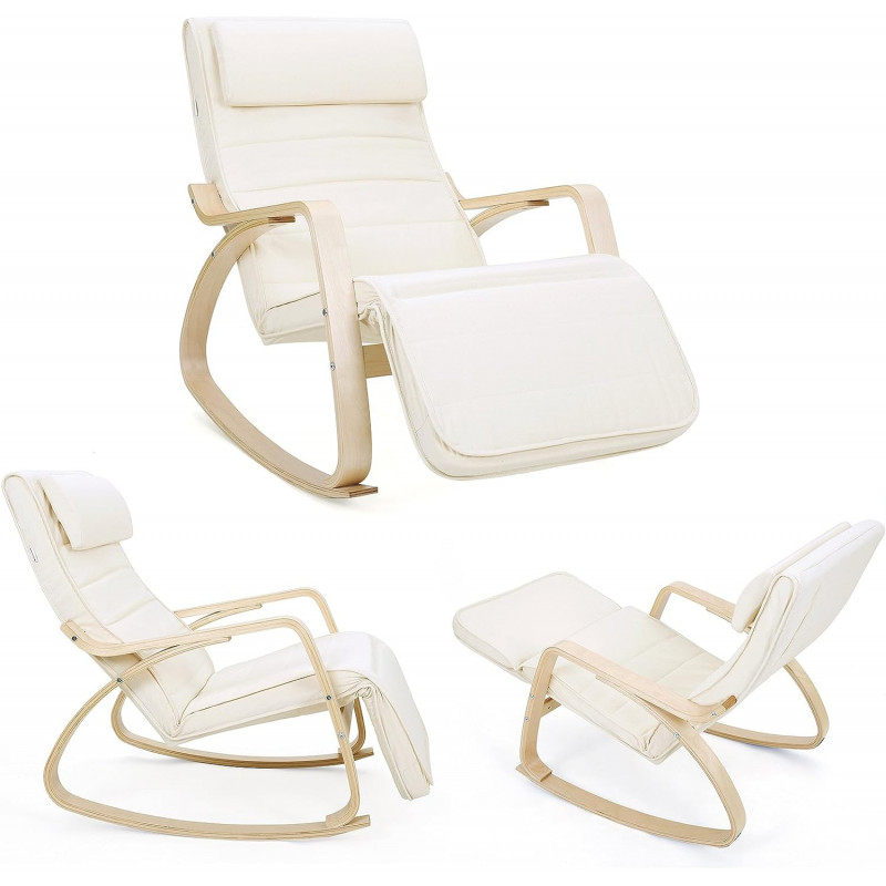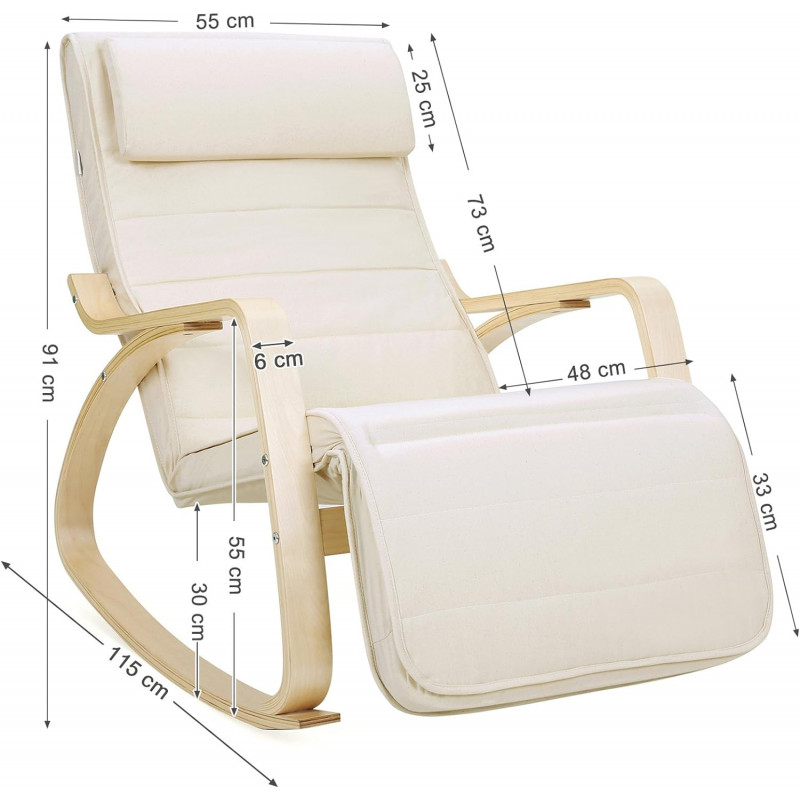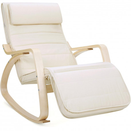 Greutatea articolului: 9.8 Kilograme Despre acest articol Fabricat din lemn de mesteacan de inalta calitate si un cadru metalic in interior, acest scaun balansoar este stabil si sigur si poate sustine pana la 150 kg.Suportul pentru picioare al fotoliului culisant este reglabil. Fie ca doriti sa va relaxati sau sa cititi o carte, aici puteti gasi o pozitie ideala. Captusite cu spuma foarte elastica, perna scaunului si tetiera sunt moi si confortabile. Puteti trage un pui de somn confortabil pe acest fotoliu. Husa pernei scaunului si a tetierei este usor detasabila pentru curatare. In plus, tetiera poate fi usor indepartata sau atasata datorita inchizatoarelor practice Velcro.Puteti utiliza fotoliul balansoar in dormitor, in camera de zi sau in birou. Picioarele sale sunt, de asemenea, echipate cu pasla antiderapanta, care va protejeaza podeaua.