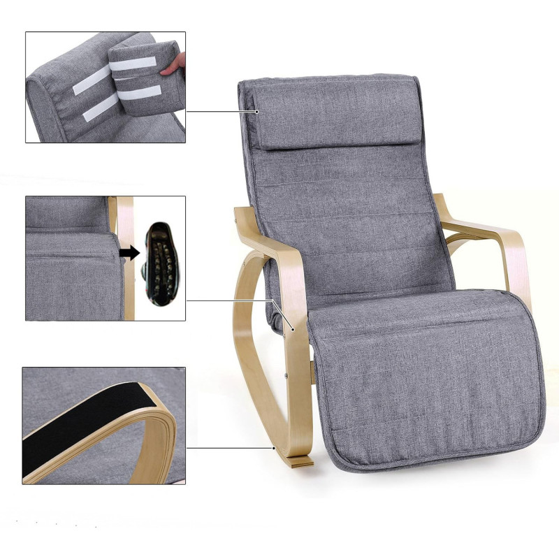 Greutatea articolului: 9.8 Kilogram Despre acest articol Fabricat din lemn de mesteacan de inalta calitate si un cadru metalic in interior, acest scaun balansoar este stabil si sigur si poate sustine pana la 150 kg.Suportul pentru picioare al fotoliului culisant este reglabil. Fie ca doriti sa va relaxati sau sa cititi o carte, aici puteti gasi o pozitie ideala. Captusite cu spuma foarte elastica, perna scaunului si tetiera sunt moi si confortabile. Puteti trage un pui de somn confortabil pe acest fotoliu. Husa pernei scaunului si a tetierei este usor detasabila pentru curatare. In plus, tetiera poate fi usor indepartata sau atasata datorita inchizatoarelor practice Velcro.Puteti utiliza fotoliul balansoar in dormitor, in camera de zi sau in birou. Picioarele sale sunt, de asemenea, echipate cu pasla antiderapanta, care va protejeaza podeaua.