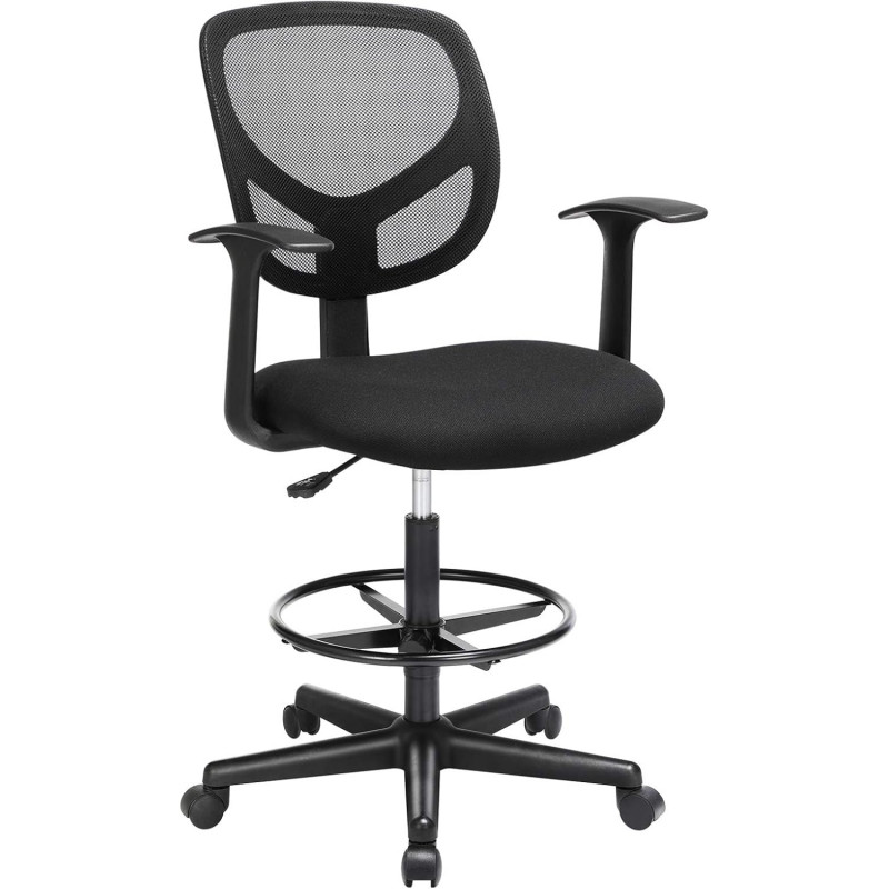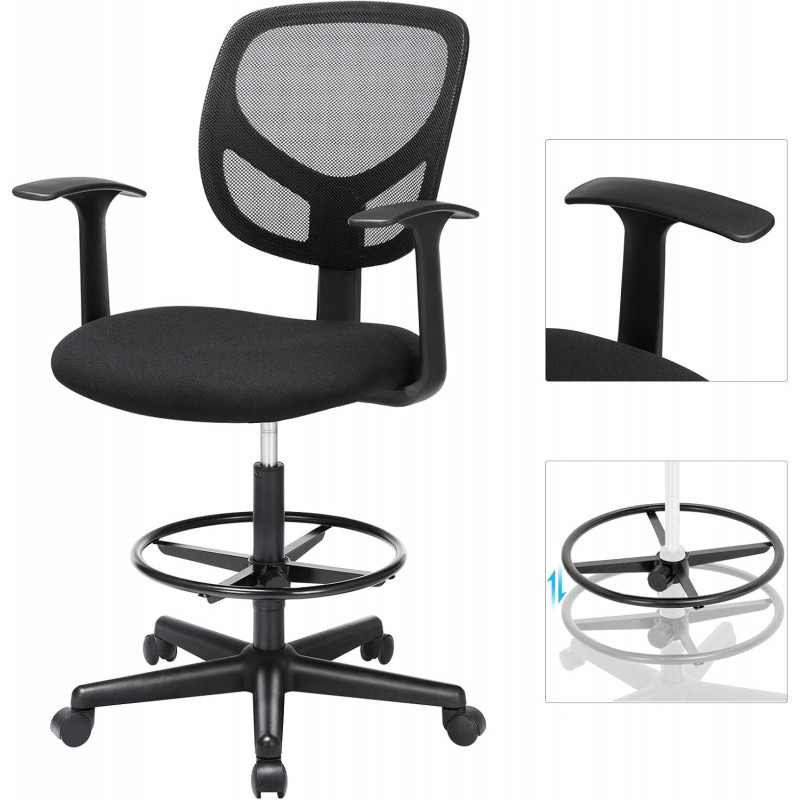 Scurta descriere: Scaunul de birou inalt este ideal pentru birouri inalte, mese de lucru sau insule de bucatarie. Ofera confort sporit datorita sezutului captusit si suportului pentru picioare reglabil. Designul ergonomic si functia de rotire il fac practic pentru utilizare zilnica.