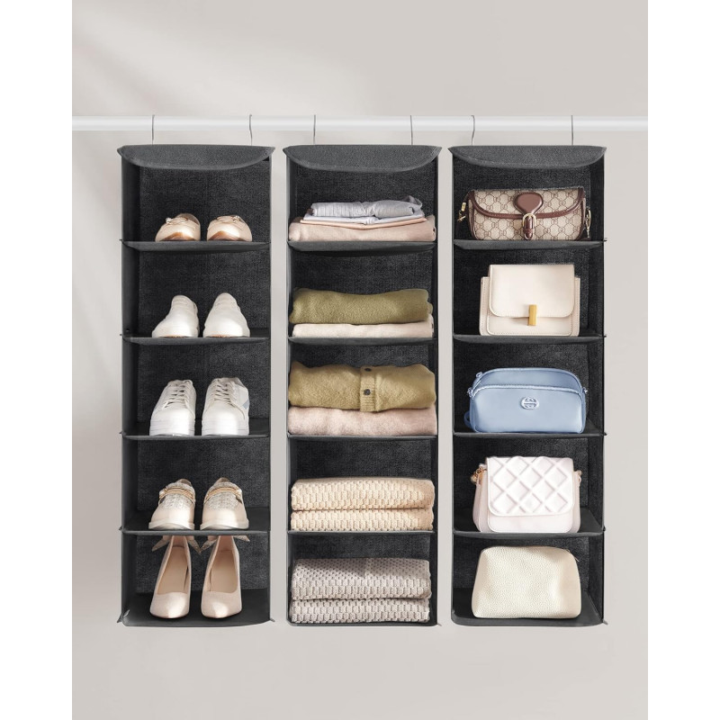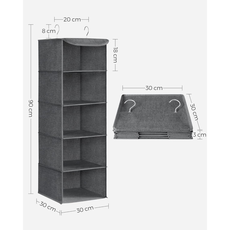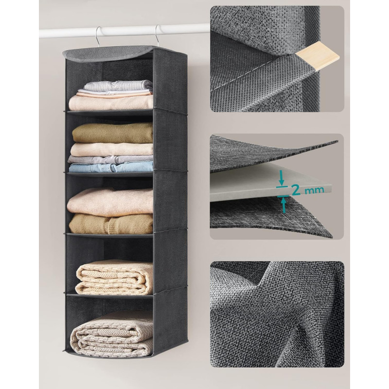 Scurta descriere Organizatorul suspendat pentru dulap este solutia ideala pentru a crea spatiu suplimentar de depozitare fara a ocupa loc pe podea. Cu 5 compartimente pe fiecare unitate, permite organizarea eficienta a hainelor, accesoriilor sau incaltamintei. Designul pliabil il face usor de depozitat atunci cand nu este folosit.