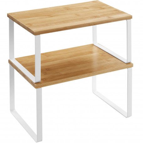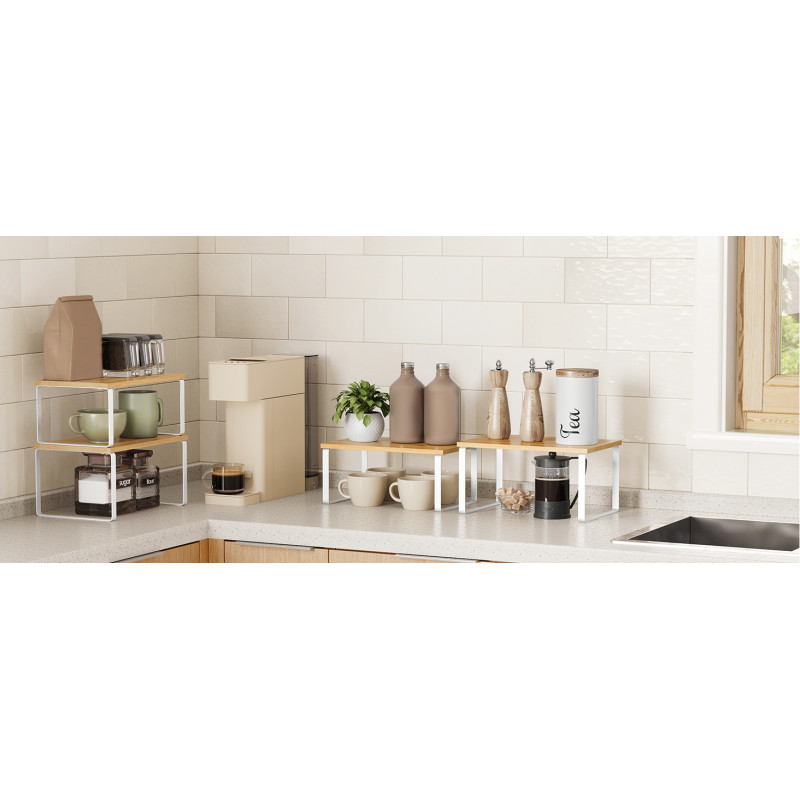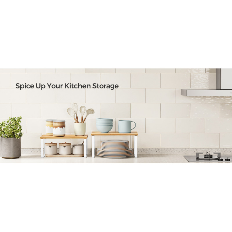 Tipul de raft: Raft cu trepte Despre acest articol Pastrati elementele esentiale de gatit, cum ar fi borcanele de condimente, recipientele, conservele, tacamurile si cartile de bucate organizate, usor de vazut si rapid de gasit cu aceste organizatoare de bucatarie.Fabricat din lemn de inalta calitate si metal, fiecare raft de condimente poate sustine o greutate maxima de 15kg, astfel incat puteti stoca o multime de provizii pe ele.Cu designul lor unic, aceste organizatoare de rafturi pot fi stivuite unul peste altul, imbinate, folosite separat sau chiar in forma de L. Ajustati-le cum doriti pentru a se potrivi perfect spatiului dvs. din bucatarie.Folositi-le pe biroul din dormitor pentru a va organiza obiectele sau chiar in baie pentru a va depozita articolele esentiale pentru baie.Cu structura lor simpla si