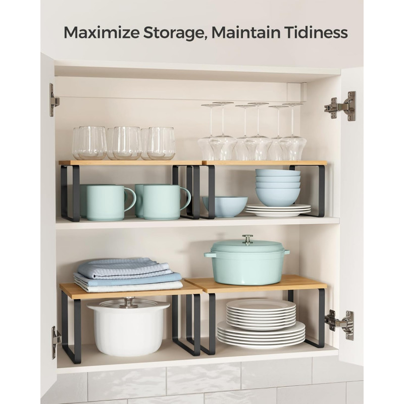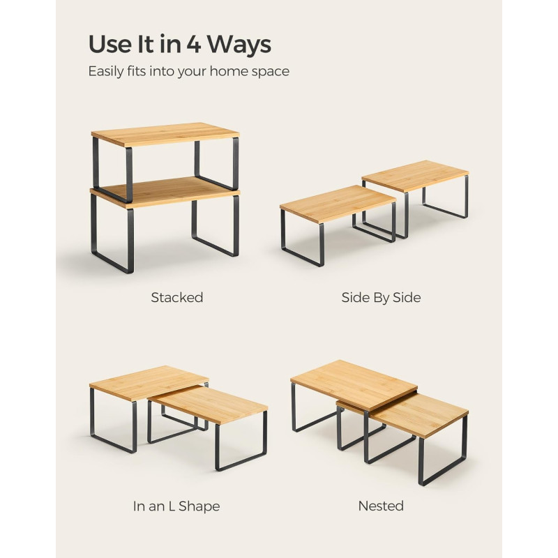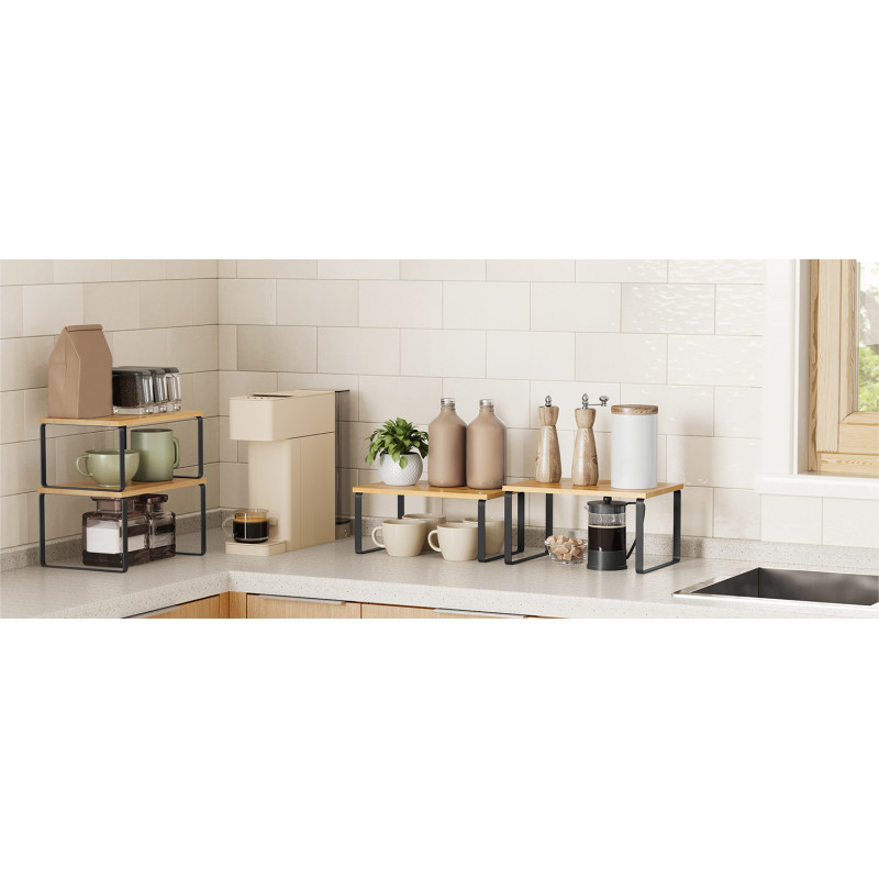Capacitatea de incarcare statica a fiecarui raft: 15 kg Despre acest articol Pastrati elementele esentiale de gatit, cum ar fi borcanele de condimente, recipientele, conservele, tacamurile si cartile de bucate organizate, usor de vazut si rapid de gasit cu aceste organizatoare de bucatarie.Fabricat din lemn de inalta calitate si metal, fiecare raft de condimente poate sustine o greutate maxima de 15 kg, astfel incat puteti stoca o multime de provizii pe ele.Cu designul lor unic, aceste organizatoare de rafturi pot fi stivuite unul peste altul, imbinate, folosite separat sau chiar in forma de L. Ajustati-le cum doriti pentru a se potrivi perfect spatiului dvs. din bucatarie.Folositi-le pe biroul din dormitor pentru a va organiza obiectele sau chiar in baie pentru a va depozita articolele esentiale pentru baie.Cu structura lor simpla si