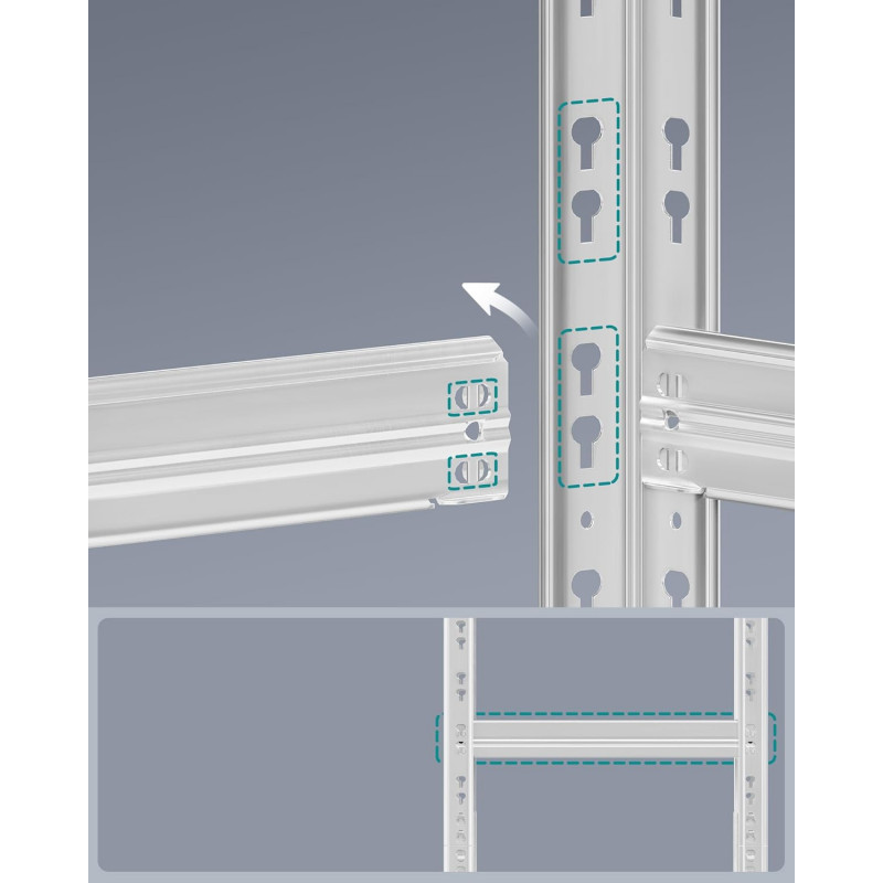 Scurta descriere: Acest set de rafturi metalice heavy-duty este ideal pentru organizarea eficienta a spatiului in garaj, depozit sau atelier. Constructia robusta si capacitatea mare de incarcare le fac potrivite pentru obiecte grele si voluminoase.