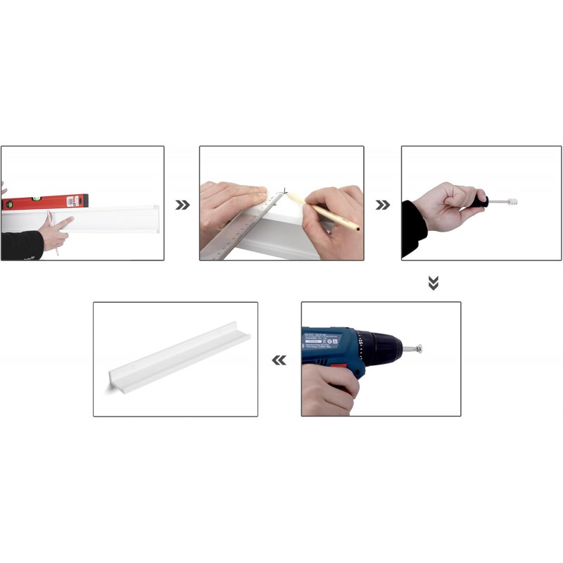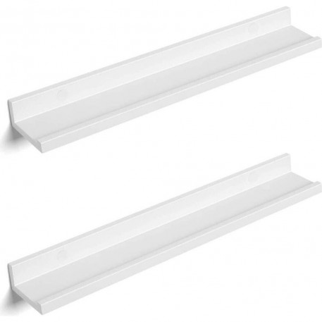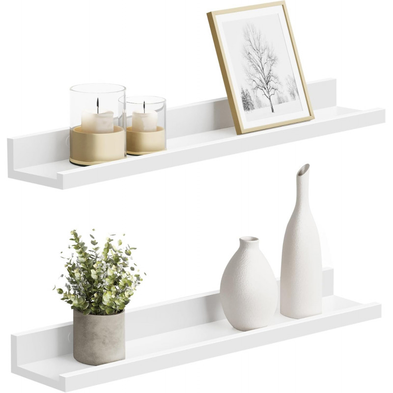 Scurta descriere: Set de doua rafturi suspendate cu design simplu si finisaj lucios, potrivite pentru expunerea ramelor foto, cartilor sau obiectelor decorative. Montajul ascuns creeaza efectul de raft plutitor si contribuie la un aspect curat si ordonat al peretelui.