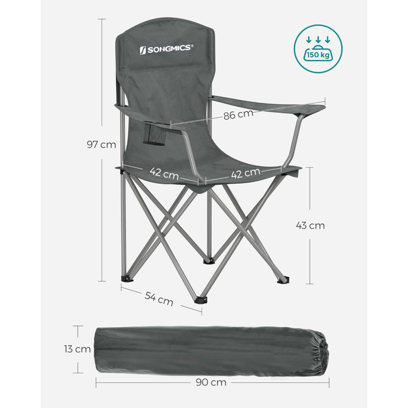 Scurta descriere Setul de 2 scaune pliabile SONGMICS este ideal pentru relaxare in aer liber, fie ca esti la camping, pescuit sau in gradina. Designul ergonomic cu spatar inalt ofera confort optim, iar materialul rezistent si impermeabil asigura durabilitate. Se pliaza rapid si sunt usor de transportat datorita husei incluse.