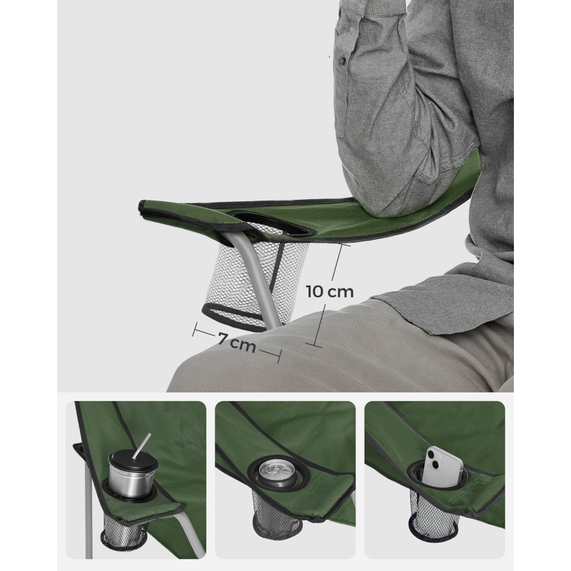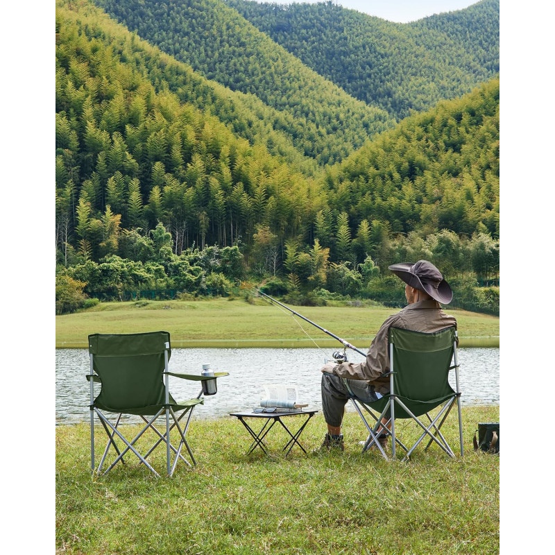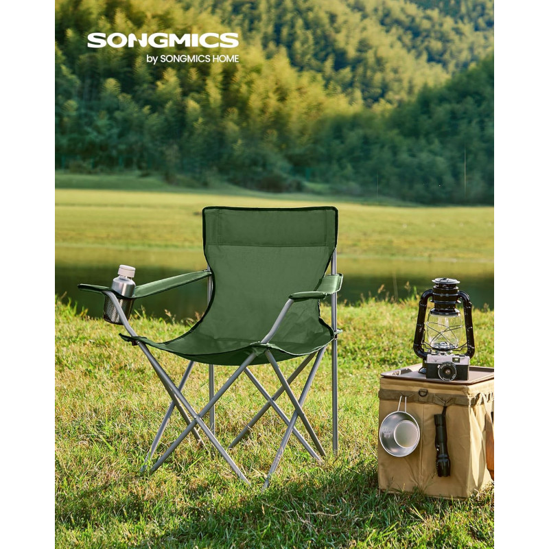 Scurta descriere Setul de 2 scaune pliabile SONGMICS este ideal pentru activitati in aer liber, oferind confort si portabilitate. Structura metalica stabila si designul ergonomic asigura sustinere optima, iar materialul impermeabil le face potrivite pentru diverse conditii. Se pliaza rapid si sunt usor de transportat datorita husei incluse.