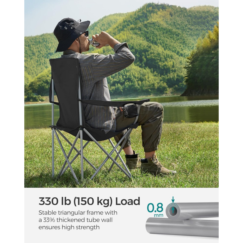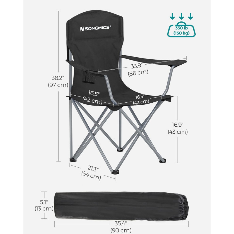 Max. Capacitatea de incarcare statica a fiecarui scaun: 150 kg Despre acest articol Acest scaun de pescuit ergonomic este conceput pentru a oferi un confort optim de asezare.Cadru de otel, tuburi cu grosimea peretelui de 0,8 mm - foarte rezistent; Tesatura Oxford 600 D cu acoperire rezistenta la apa - foarte rezistenta la uzura si durabila. Scaunul de camping suporta pana la 150 kg.Scaunul pliabil compact cantareste doar 2,6 kg si poate fi pliat si depozitat in geanta de transport inclusa (dimensiune pliat: 13 x 90 x 13 cm), astfel incat sa il puteti aseza cu usurinta in masina sau sa-l agatati de rucsac.Pur si simplu desfaceti scaunul de plaja atunci cand il utilizati - fara asamblare complicata. In plus, scaunul are un suport pentru bauturi pentru a-ti depozita bautura, telefonul mobil, sticla de apa sau alte obiecte mici.Aceste doua scaune pliabile de camping raspund nevoilor diferite - pescuit langa rau, plaja dupa-amiaza pe terasa, drumetii sau spectacole de fotbal, toate fara probleme.