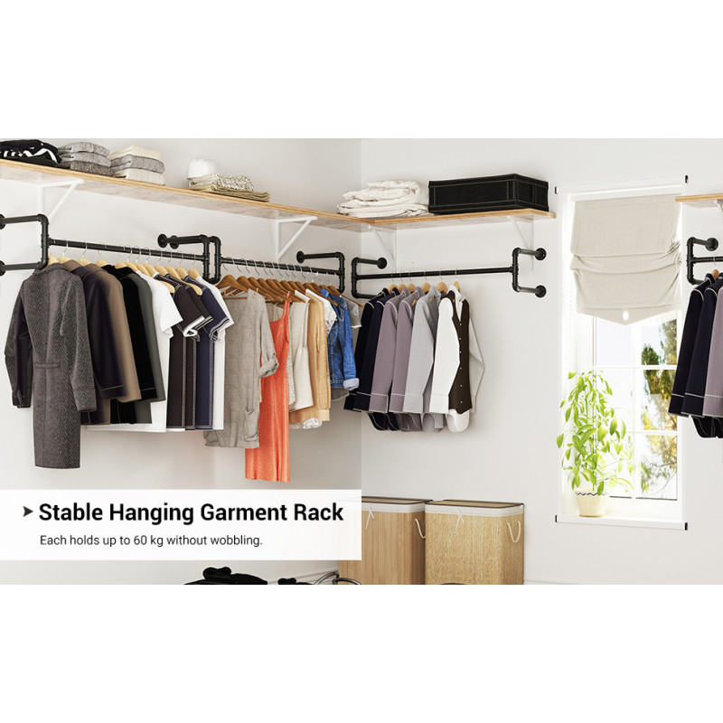 Eliberati putin spatiu pe podea: doriti sa faceti ordine in hainele ingramadite din garderoba sau esarfele dezordonate din sertar? Incearca acest set de suporturi pentru haine SONGMICS! Cu o lungime de 112 cm si un design montat pe perete, ele gazduiesc o multime de haine si accesorii economisind in acelasi timp spatiu in camera. Aceste suporturi pentru haine rezistente sunt fabricate din otel de inalta calitate. Au trecut testul de incarcare de 60 kg.