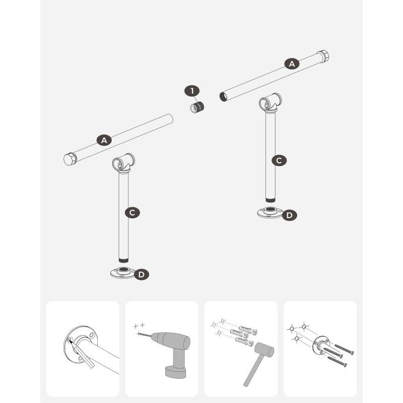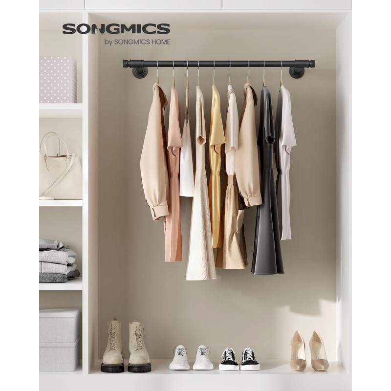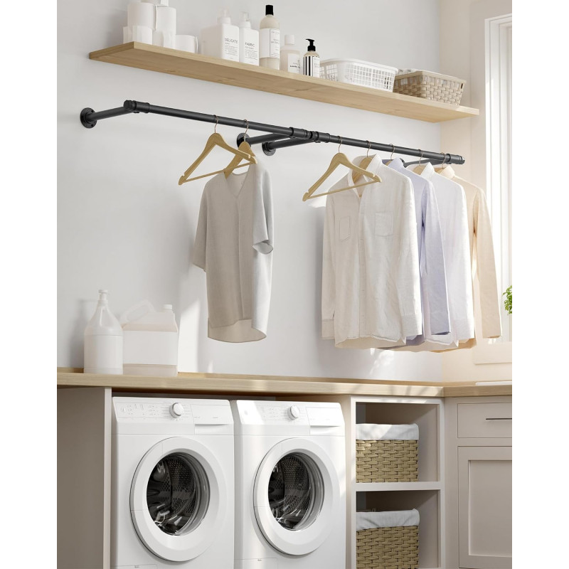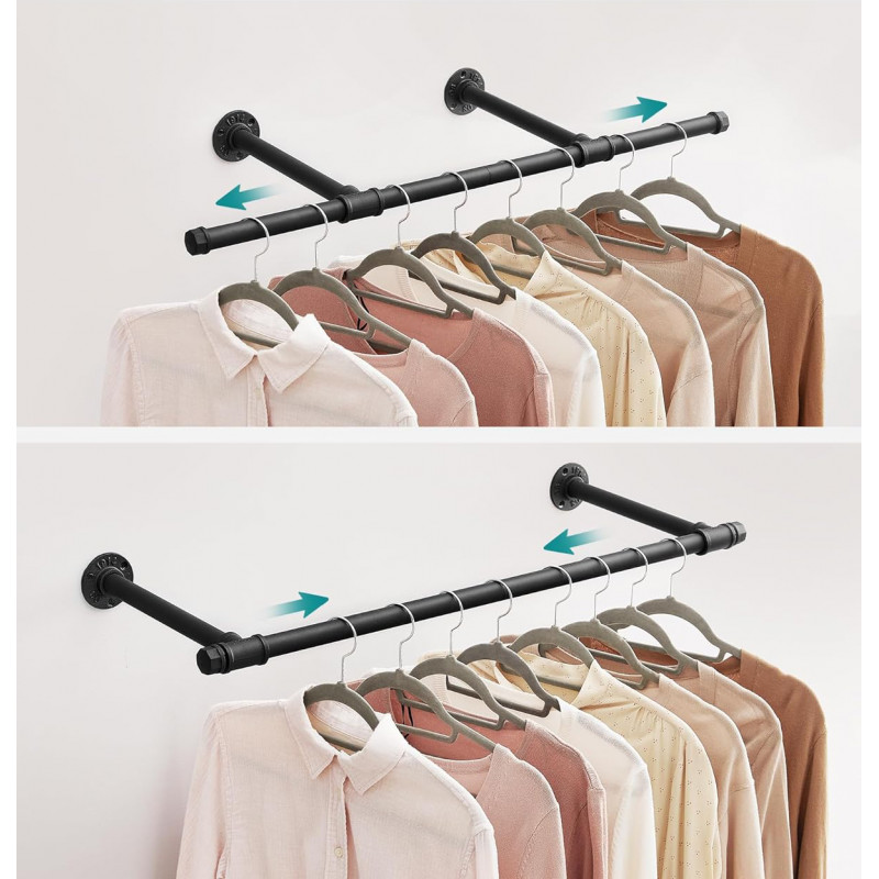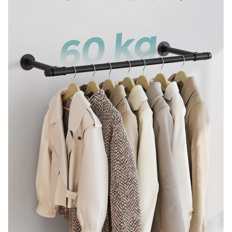 Numar de bucati: 2 Despre acest articol Fiecare sina pentru haine este fabricata dintr-un tub din otel cu diametrul de 25,4 mm, care sustine pana la 60 kg atunci cand este montat pe un perete solid. Simtiti-va liber sa atarnati pe el paltoane grele de iarna.Pur si simplu faceti gauri in perete pentru a monta cuierul pentru haine. Atunci cand este montat pe gips carton, puteti ajusta distanta dintre suporturi in functie de distanta dintre stalpi. Suportul de haine rezistent este realizat dintr-un tub de otel negru, conferind un farmec industrial camerei dvs. Nu mai exista spatiu plictisitor!Instalati aceasta sina de agatat montata pe perete in dormitor, spalatorie sau magazin. Acesta va satisface toate nevoile dvs. de agatare, inclusiv haine, esarfe, curele, cravate si multe alteleg.