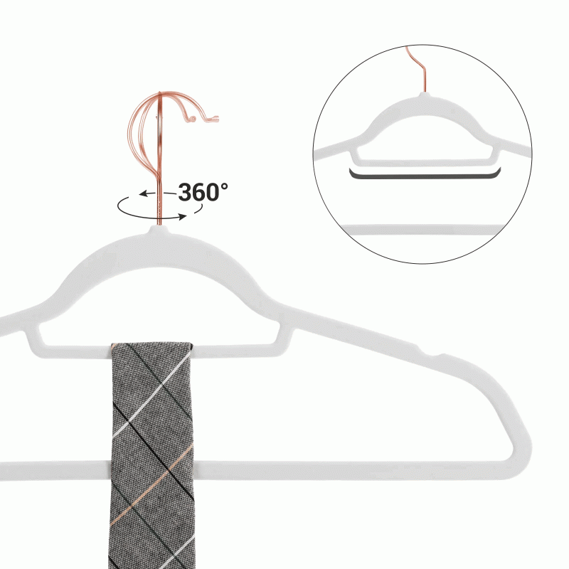 Caracteristici principale: Catifea antialunecare pentru haine delicate Design subtire ce economiseste spatiu Structura din ABS rezistenta pana la 5 kg Carlig metalic rotativ 360° pentru acces facil Bara centrala pentru cravate sau esarfe Potrivite pentru camasi, sacouri, rochii sau pantaloni