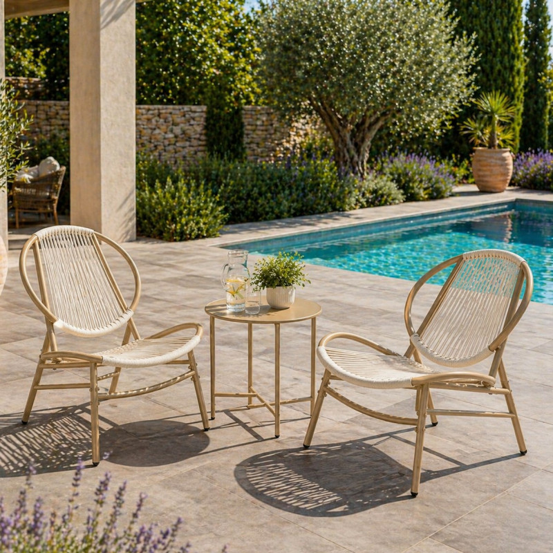 Componente set: 2x scaune tip Acapulco 1x masa laterala