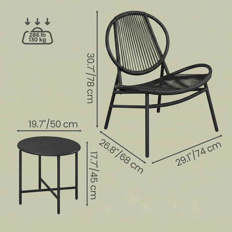 Scurta descriere Setul bistro pentru gradina este ideal pentru relaxare atat in exterior, cat si in interior. Scaunele tip Acapulco ofera confort datorita designului ergonomic, iar structura stabila completeaza un ansamblu modern si practic. Perfect pentru balcon, terasa sau living.