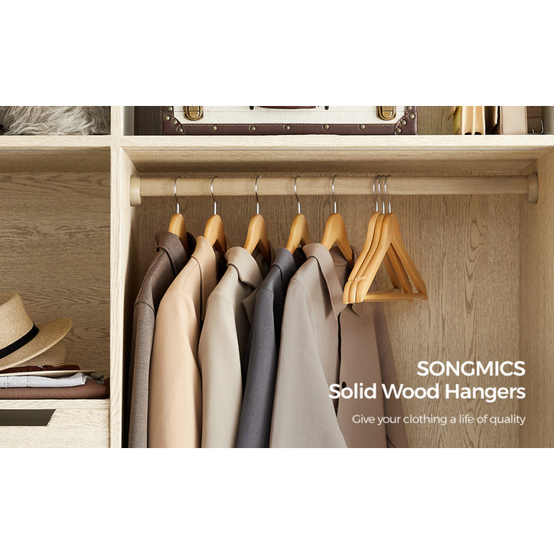 Capacitatea de incarcare statica a fiecarui cuier: 5 kg Despre acest articol Aceste umerase elegante din lemn masiv au o suprafata neteda, lustruita manual, care nu va va deteriora hainele, pastrandu-le in cea mai buna forma.Confectionate din lemn de artar de inalta calitate, aceste umerase sunt puternice si durabile si pot agata haine din toate anotimpurile, inclusiv jachete sau paltoane de iarna care cantaresc pana la 5 kg.Aceste umerase din lemn sunt curbate pentru a imita umerii dvs. si au grija de hainele dvs. delicate.Carligele metalice de inalta calitate de pe aceste umerase se rotesc la 360 °, astfel incat, chiar daca va agatati din greseala hainele in directia gresita, acestea pot fi schimbate cu usurinta.Fantele antiderapante in forma de U si o bara antiderapanta pentru pantaloni impiedica alunecarea hainelor si a pantalonilor; de asemenea, puteti face din umeras un cadou unic pentru familie si prieteni.