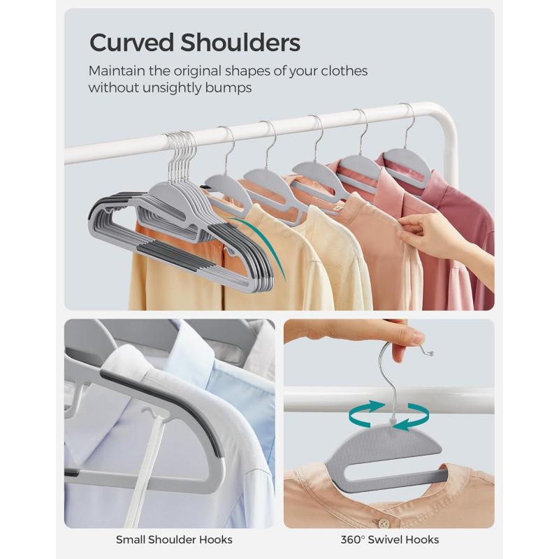 Scurta descriere: Acest set de umerase este ideal pentru organizarea eficienta a hainelor, oferind stabilitate si protectie impotriva alunecarii. Designul cu deschidere U permite agatarea usoara a hainelor fara a le deforma.