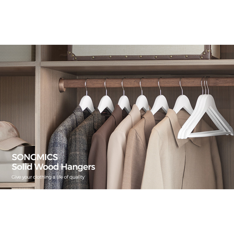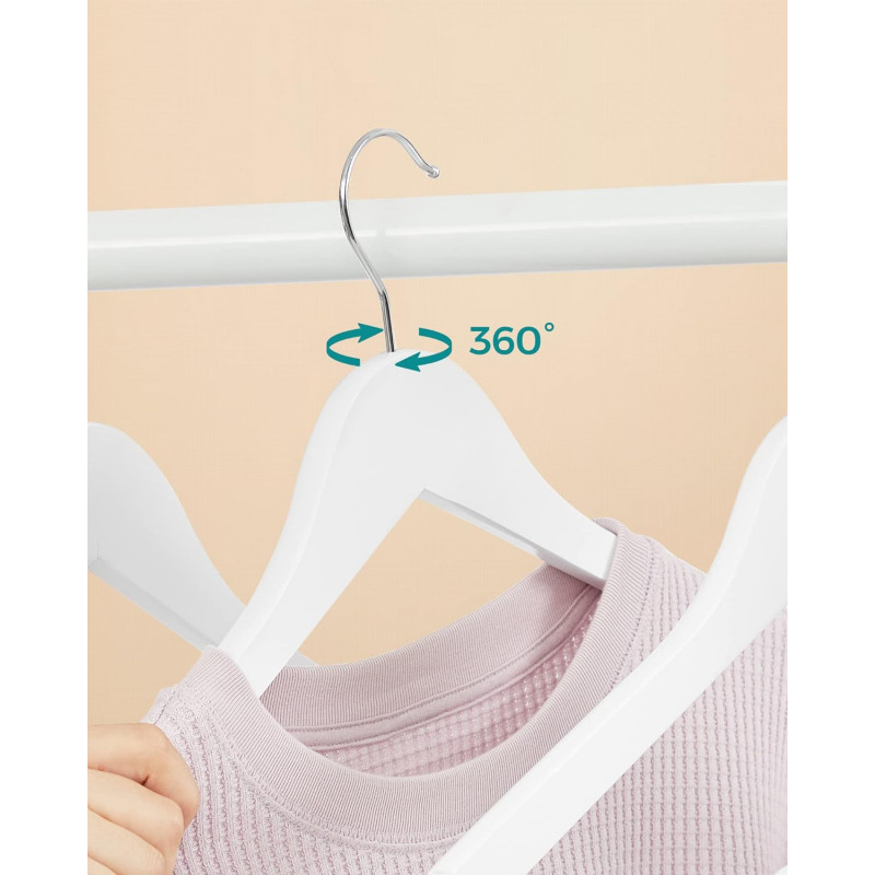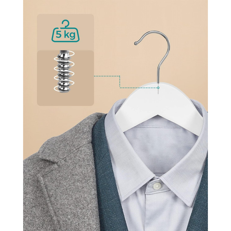 Capacitatea de incarcare statica a fiecarui umeras: 5 kg Despre acest articol Aceste umerase elegante din lemn masiv au o suprafata neteda, lustruita manual, care nu va va deteriora hainele, pastrandu-le in cea mai buna forma.Confectionate din lemn de artar de inalta calitate, aceste umerase sunt puternice si durabile si pot agata haine din toate anotimpurile, inclusiv jachete sau paltoane de iarna care cantaresc pana la 5 kg.Carligele metalice de inalta calitate de pe aceste umerase se rotesc la 360 °, astfel incat, chiar daca va atarnati din greseala hainele in directia gresita, acestea pot fi schimbate cu usurinta.