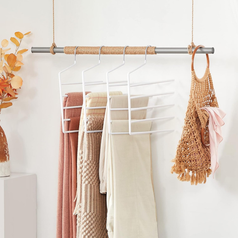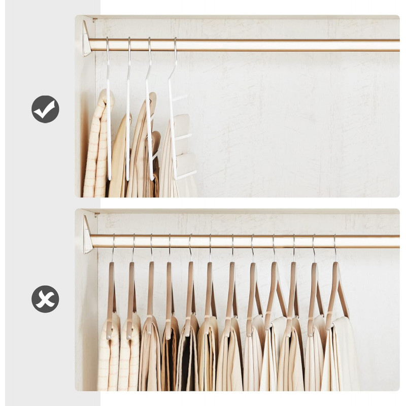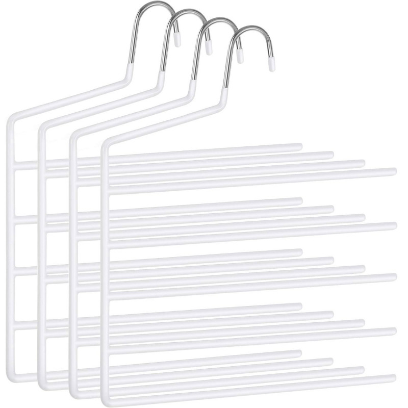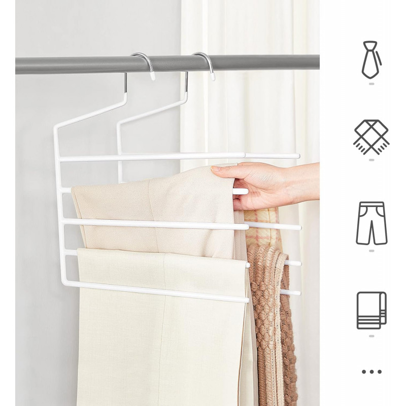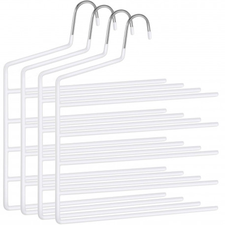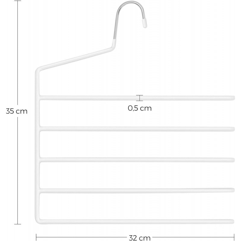 Capacitate de incarcare statica maxima per suport: 4 kg. Despre acest articol In garderoba ta se afla un munte imens de pantaloni? Esarfele si prosoapele tale sunt dezordonate intr-un sertar? Umerasele noastre multiple va vor veni in ajutor! Ca sa puteti agata totul in mod ordonat.Cu aceste umerase multiple pentru pantaloni, puteti economisi pana la 80% din spatiul din dulap. Asa ca urmatorul tur de shopping poate veni!Nu! Sunteti suparat ca hainele dvs. tot aluneca de pe umeras? Acest lucru nu vi se va mai intampla de acum inainte. Datorita acoperirii din PVC a acestor umerase, hainele dvs. pot fi agatate fara sa alunece si fara sa se sifoneze.Confectionate din metal rezistent, fiecare dintre aceste umerase multiple pentru pantaloni poate suporta greutati de pana la 4 kg.Ce primesti: 4 umerase multiple pentru pantaloni, fiecare cu 5 bare. Aceste umerase va permit sa va atarnati pantalonii si esarfele in mod clar si ordonat si sa maximizati spatiul din dulap.