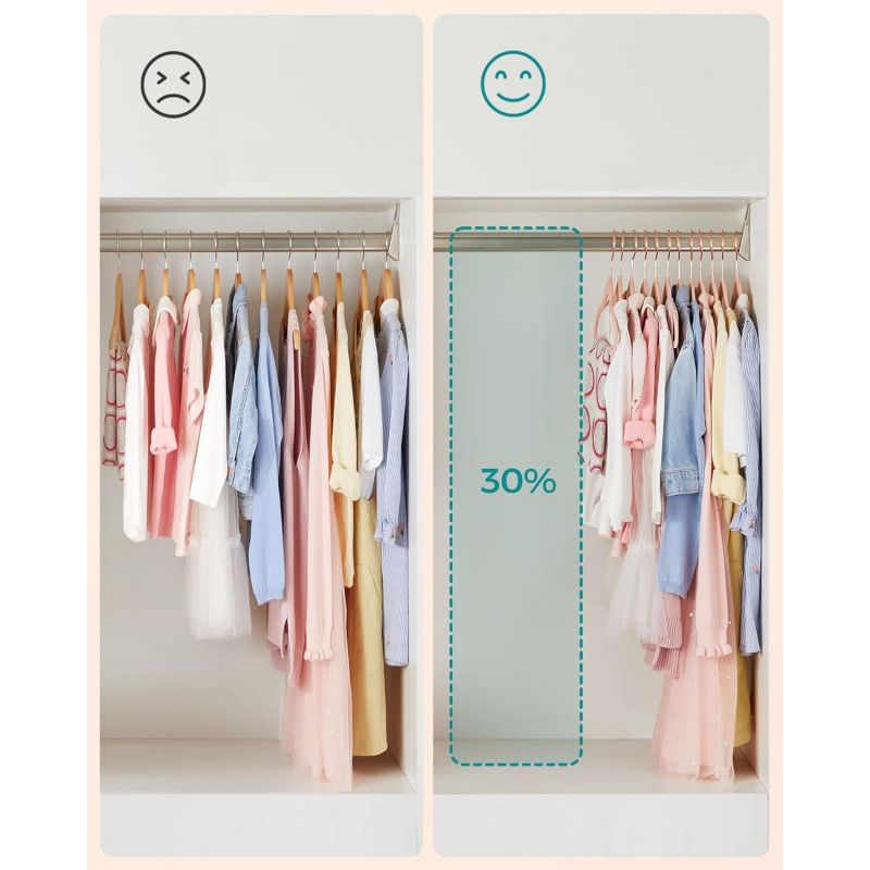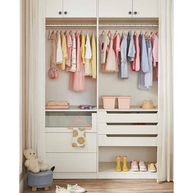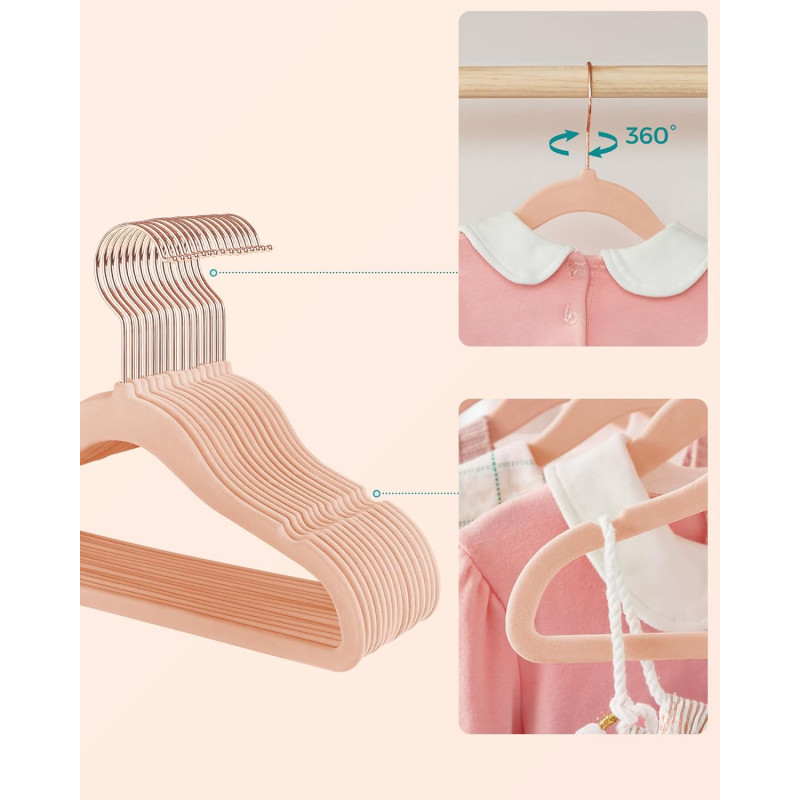 Scurta descriere: Organizeaza hainele copiilor eficient cu acest set de umerase din catifea, special concepute pentru a preveni alunecarea hainelor. Designul compact economiseste spatiu si pastreaza hainele in forma perfecta.