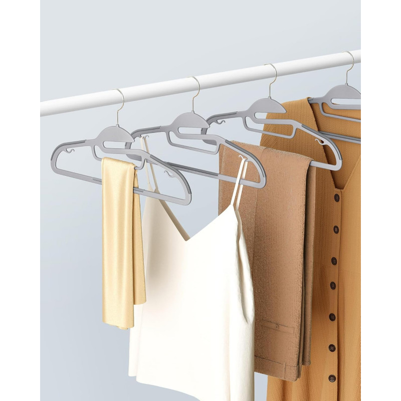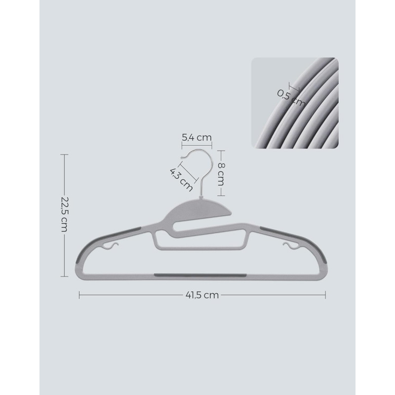 Economie de spatiu: Aceste umerase din plastic de inalta calitate au doar 0,5 cm grosime si puteti agata jachete si pantaloni, precum si esarfe si cravate pe bara centrala, permitandu-va sa atarnati mai multe haine in acelasi dulap.