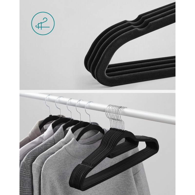 Capacitatea de incarcare statica a unui singur umeras: 5 kg Despre acest articol Canelurile antiderapante de pe umeri impiedica alunecarea hainelor – chiar si a camasilor de matase.Fabricate din plastic ABS durabil, aceste umerase de haine sunt subtiri, dar foarte rezistente; fiecare umeras are o capacitate de incarcare statica maxima de 5 kg, astfel incat chiar si paltoanele grele de iarna pot fi agatate fara probleme.Fiecare cuier de catifea are un profil subtire, permitandu-va sa atarnati mai multe haine in acelasi spatiu; bara centrala poate fi folosita pentru esarfe sau cravate.Carligele solide placate cu metal de pe umerase se pot roti la 360°, astfel incat, chiar daca hainele dvs. sunt agatate in directia gresita, le puteti intoarce cu usurinta fara a fi nevoie sa scoateti hainele.Ce primiti: Un set de 20 de umerase de catifea de inalta calitate pentru haine, care este elegant, solid, greu de rupt si va dura multi ani de acum incolo.