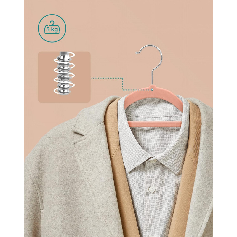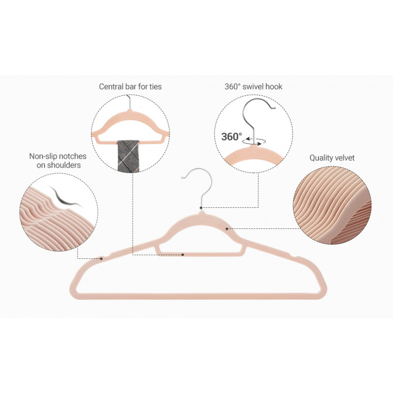 Capacitate de incarcare statica a unui singur cuier: 5 kg Despre acest articol Canelurile antiderapante de pe umeri impiedica alunecarea hainelor - chiar si a camasilor de matase.Fabricate din plastic ABS durabil, aceste umerase de haine sunt subtiri, dar foarte rezistente; fiecare umeras are o capacitate de incarcare statica maxima de 5 kg, astfel incat chiar si paltoanele grele de iarna pot fi agatate fara probleme.Fiecare cuier de catifea are un profil subtire, permitandu-va sa atarnati mai multe haine in acelasi spatiu; bara centrala poate fi folosita pentru esarfe sau cravate.Carligele argintii lucioase se rotesc la 360°, ajutandu-va sa va atarnati hainele in mod ordonat, adaugand in acelasi timp putina stralucire dulapului dvs.Ce primiti: Un set de 50 de umerase de catifea de inalta calitate cu carlige stralucitoare de culoare argintie, rezistente si greu de rupt, si o modalitate mai buna de a va organiza garderoba.