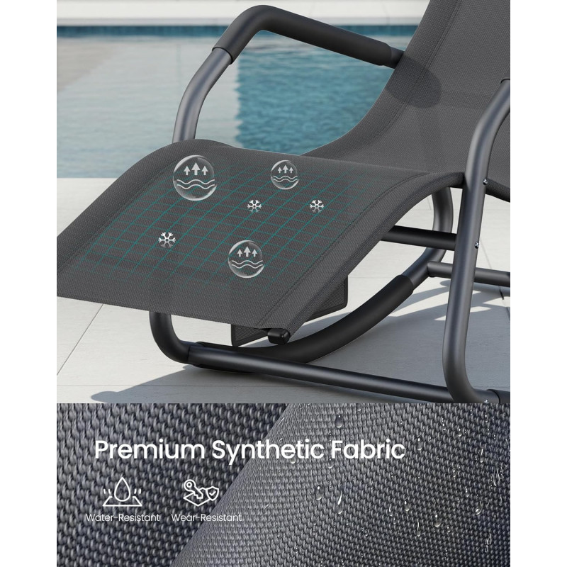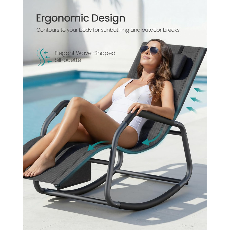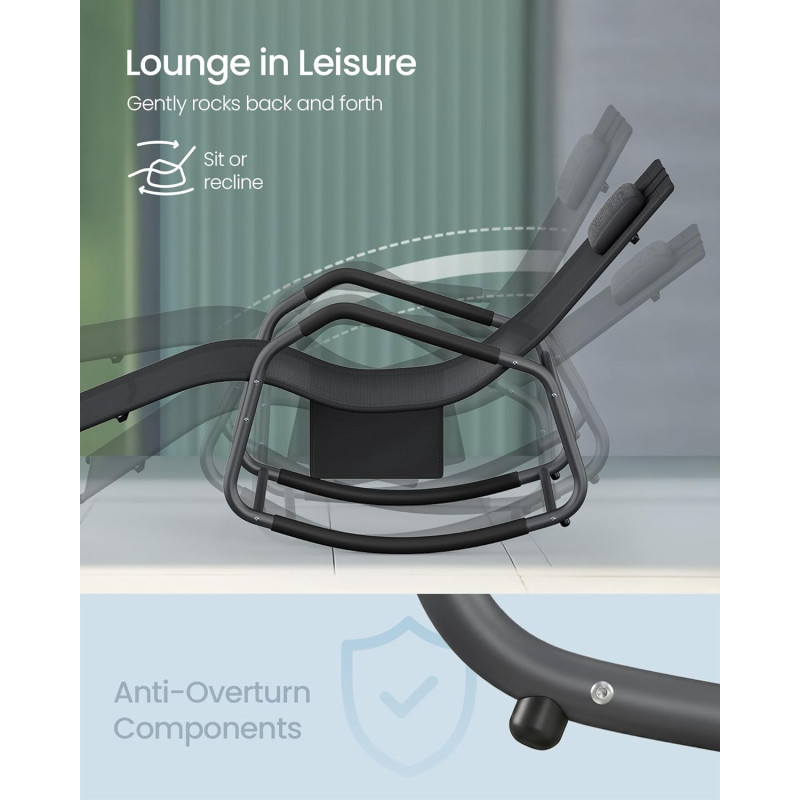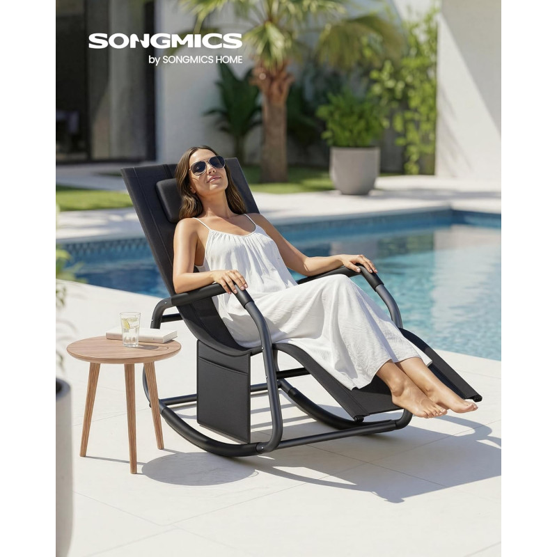 Scurta descriere Sezlongul balansoar SONGMICS este perfect pentru relaxare in aer liber, fie ca stai la soare, citesti sau pur si simplu te odihnesti. Forma ergonomica sustine corpul in mod confortabil, iar tetiera reglabila iti permite sa iti gasesti rapid pozitia ideala. Miscarea usoara de balans adauga un plus de relaxare, fie ca il folosesti in gradina, pe terasa sau pe balcon.