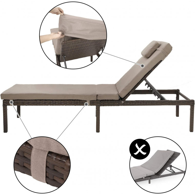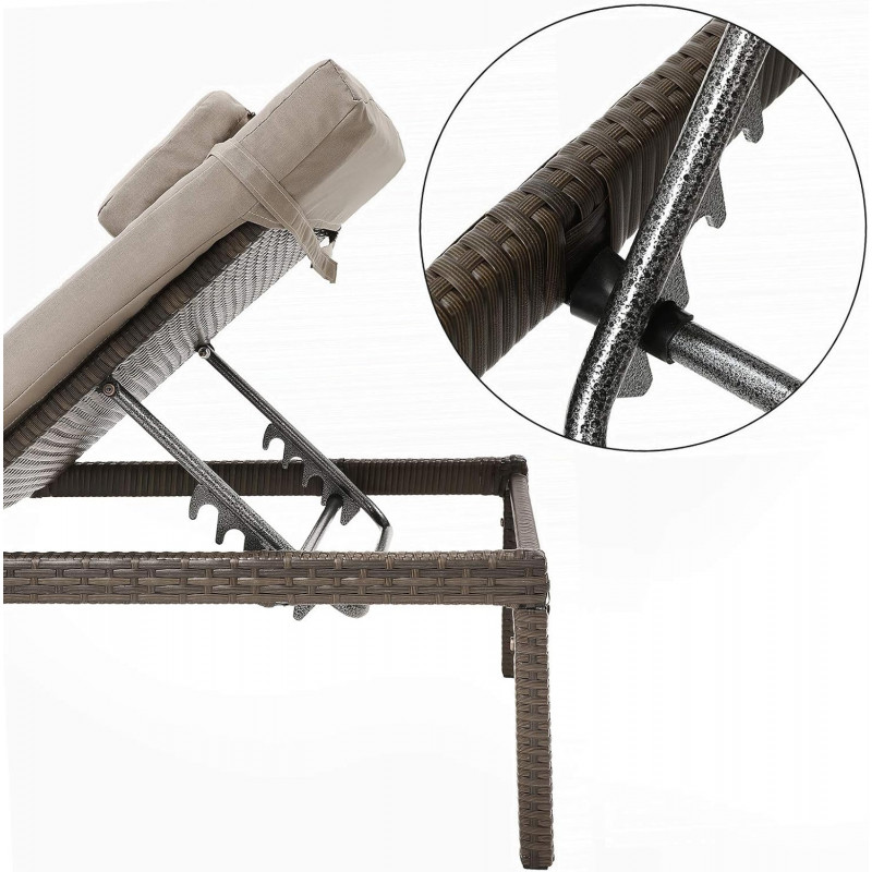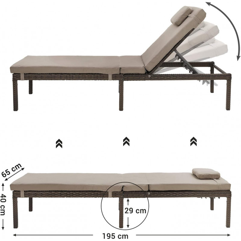Scurta descriere Sezlongul pentru gradina este alegerea ideala pentru momente de relaxare in aer liber. Ofera confort ridicat datorita saltelei groase si tetierei, fiind perfect pentru terasa, gradina sau chiar plaja. Structura rezistenta si designul modern il fac potrivit pentru utilizare indelungata.