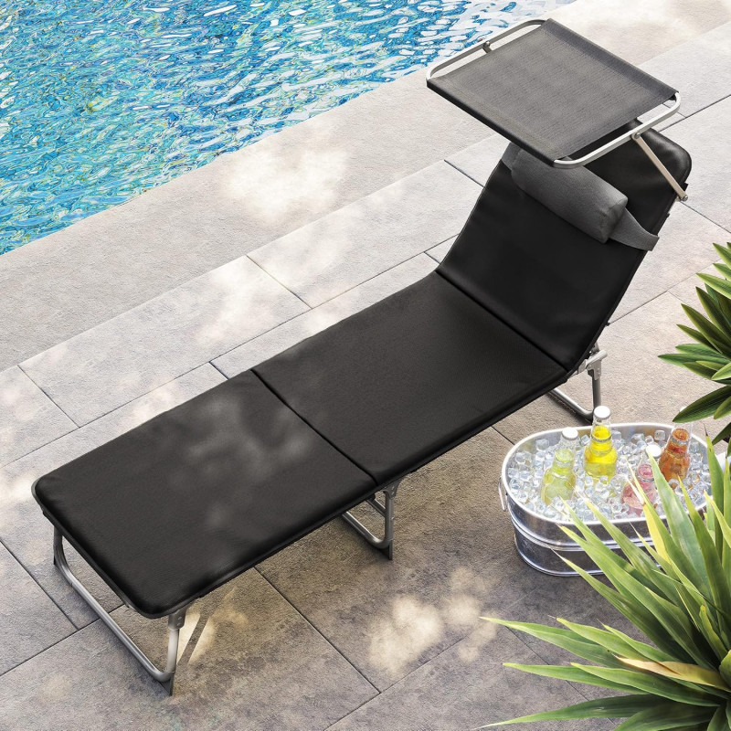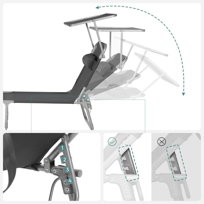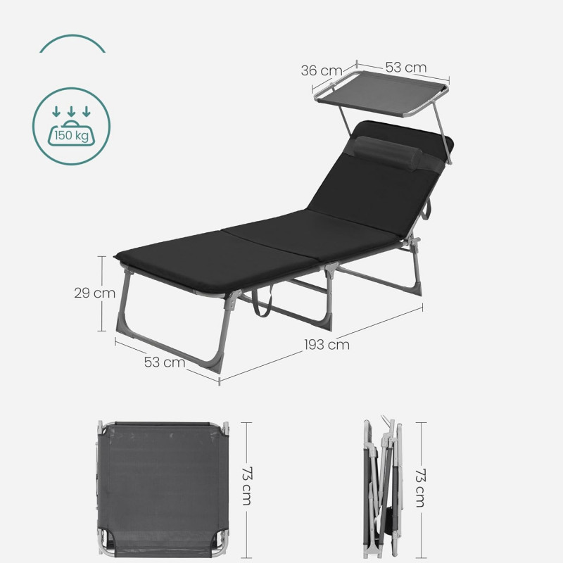 Scurta descriere Sezlongul pliabil SONGMICS este ideal pentru zilele relaxante petrecute la soare. Usor de transportat si depozitat, acesta iti ofera confort datorita spatarului reglabil si materialului respirabil. Parasolarul integrat iti permite sa te bucuri de soare fara disconfort, fie ca esti la piscina, pe terasa sau in gradina.