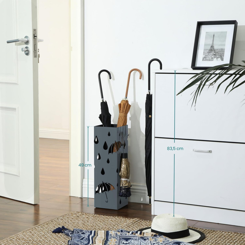 Scurta descriere: Adauga un plus de stil si functionalitate holului tau cu acest suport de umbrele modern. Prevazut cu recipient pentru colectarea apei si carlige pentru umbrele pliabile, mentine spatiul curat si bine organizat.