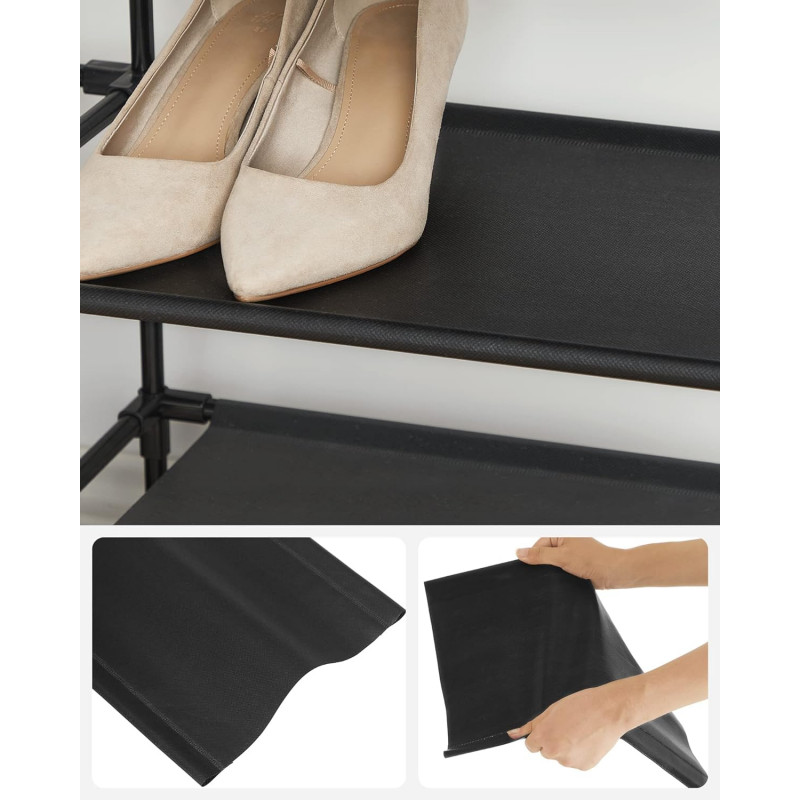 instructiuni usor de citit, ilustrate si piese etichetate pentru o asamblare fara probleme. Este fabricat din tuburi metalice puternice si tesatura netesuta durabila, oferind pantofilor dvs. un suport stabil si fiabil. Cu o dimensiune de 33 x 33 x 173 cm, acest suport pentru pantofi cu 10 niveluri va ajuta sa economisiti spatiu pretios pe podea, oferind in acelasi timp o multime de spatiu de depozitare.Puteti utiliza acest suport pentru pantofi in felul dvs.: impartiti-l in 2 parti si utilizati-le in camere separate sau indepartati unele rafturi pentru a incapea pantofi sau cizme mai inalte.Invitati acest organizator pentru depozitarea pantofilor in holul dvs., sufragerie, dressing, dormitor sau oriunde aveti nevoie de depozitare suplimentara. Oriunde ati folosi raftul pentru pantofi, acesta va poate pastra intotdeauna pantofii curati si ordonati.