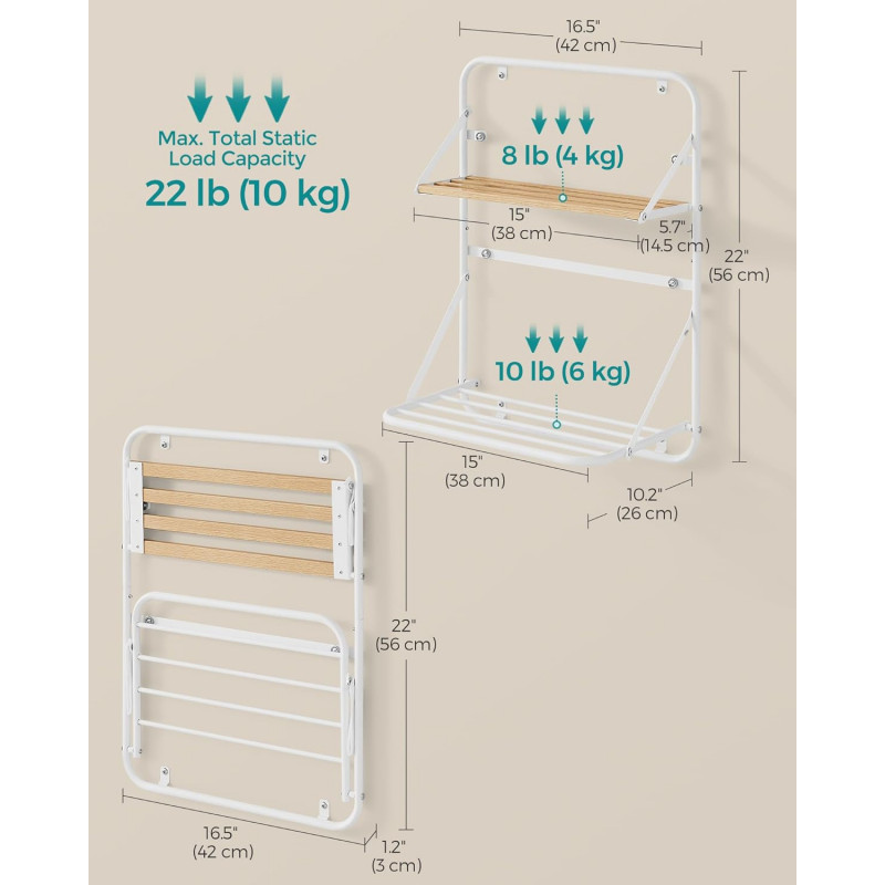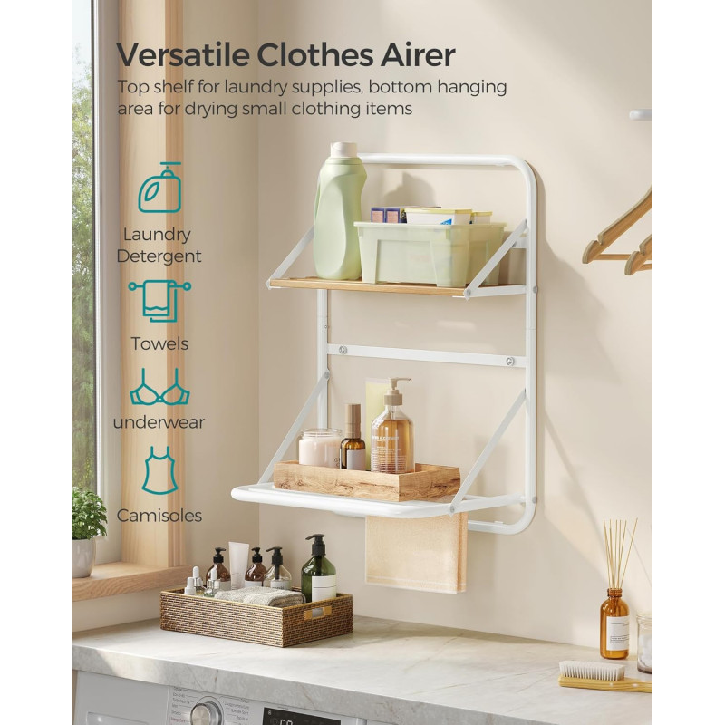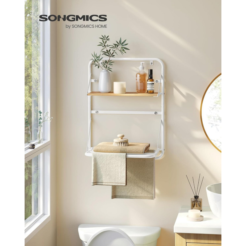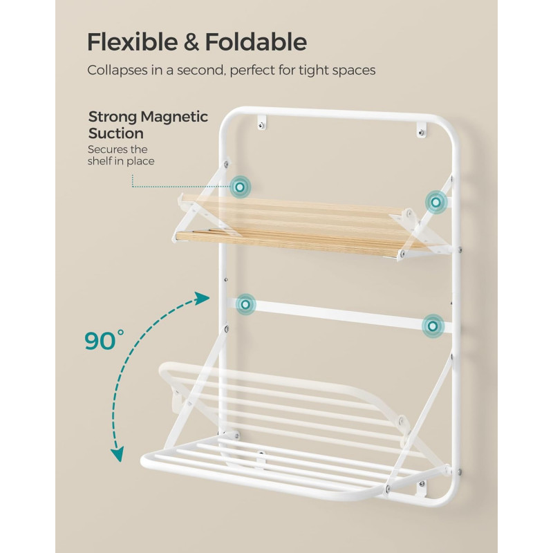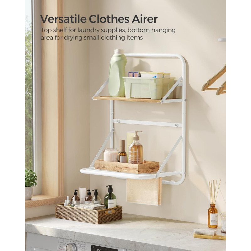 Scurta descriere Suportul de rufe pliabil SONGMICS este solutia practica pentru spatii mici. Conceput pentru montaj pe perete, include 5 bare pentru uscarea rufelor, o polita pentru detergenti si tije pentru accesorii. Structura din otel carbon este rezistenta, iar designul magnetic permite plierea rapida si economisirea spatiului atunci cand nu este folosit.