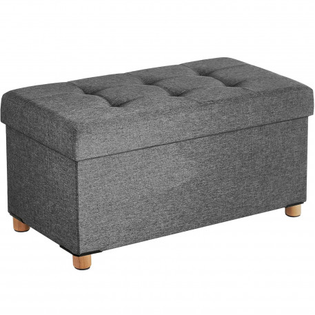 Elegant si solid: Acest pouf de depozitare are o tesatura eleganta cu aspect de in, cu cusaturi fine. Aparatoarele de colt metalice ajuta la intarirea capacului si placile groase din MDF sustin partea superioara si laterala. De asemenea, picioarele din lemn previn contactul direct al cufarului cu podeaua.