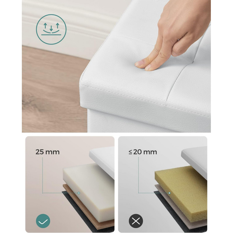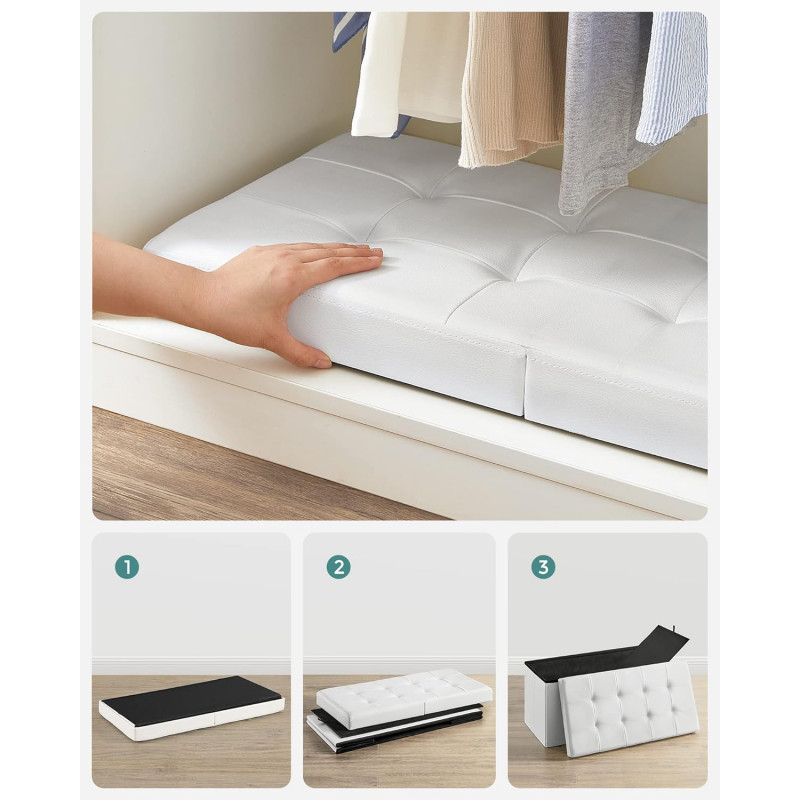 Asamblare: usor de asamblat: Design pliabil, putine piese libere, puteti asambla bancuta in cel mai scurt timp. Atunci cand nu este utilizata, pur si simplu pliati-o si depozitati-o fara a ocupa mult spatiu O cutie, multe fete : De la un suport confortabil pentru picioare in camera de zi, de la o banca pentru pantofi in hol sau de la un cufar de pat in dormitor la o cutie de depozitare pentru jucarii, aceasta banca este cu adevarata polivalenta