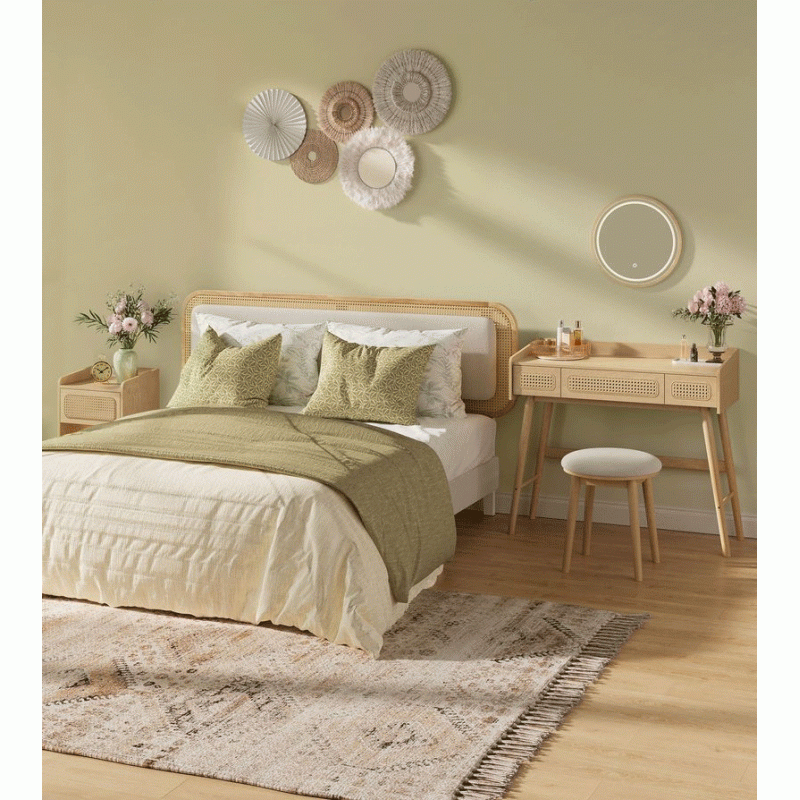 Caracteristici principale: Design boho chic cu textura bouclette si lemn natural