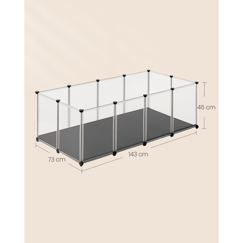 Scurta descriere Tarcul SONGMICS pentru animale mici ofera un spatiu sigur si confortabil pentru iepuri, hamsteri sau porcusori de guineea. Placile de baza protejeaza podeaua, iar covorasul impermeabil detasabil faciliteaza curatarea. Structura modulara permite montarea in diverse forme si chiar pe doua niveluri.