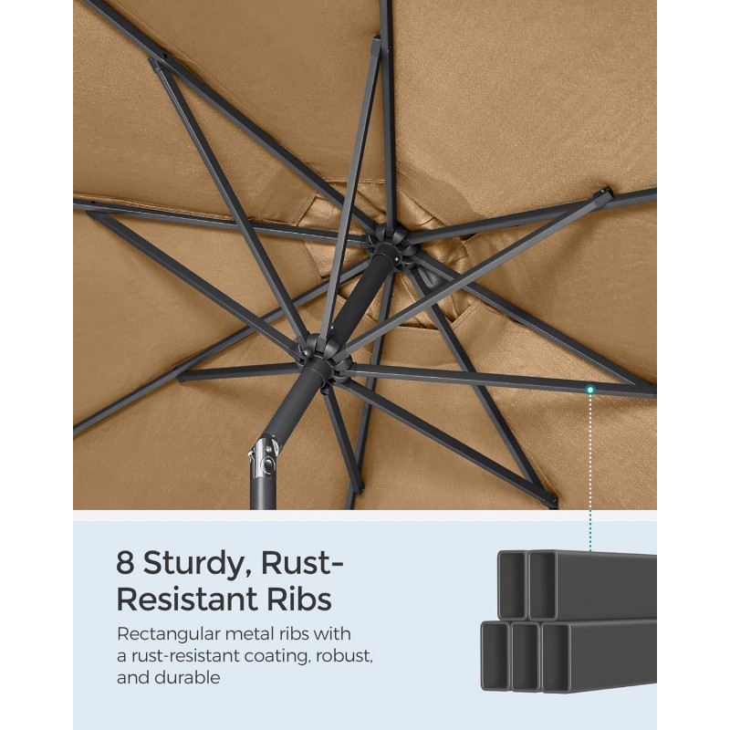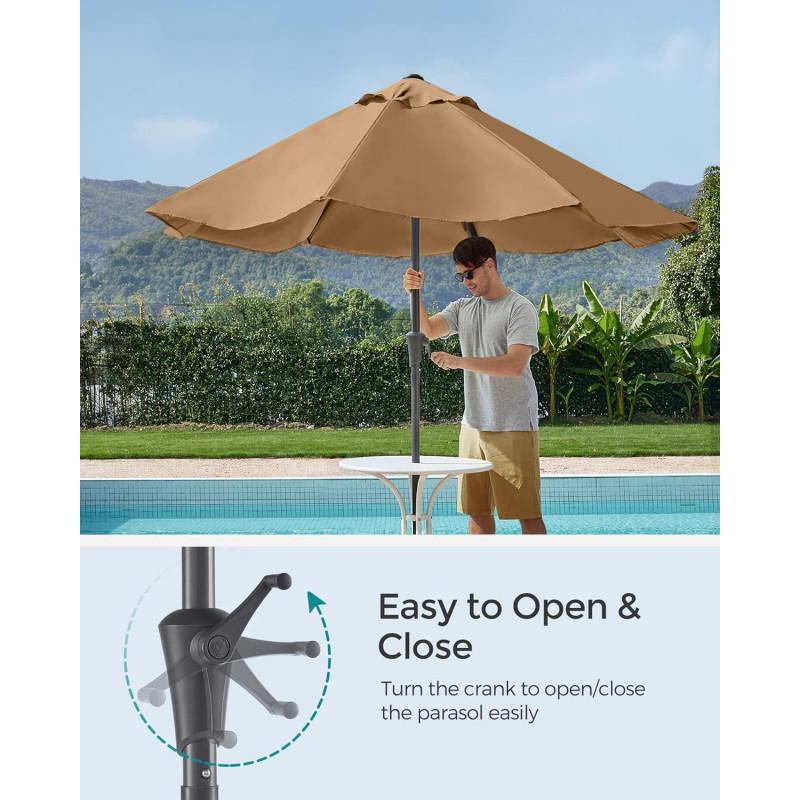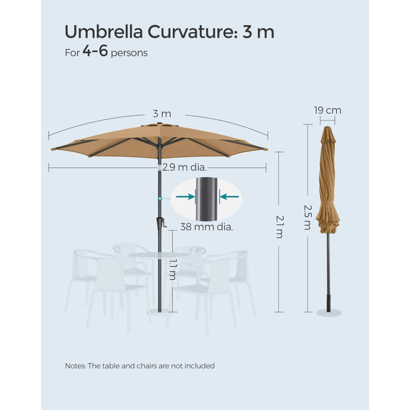 Scurta descriere Parasolul de gradina cu diametru de 300 cm este ideal pentru relaxare in aer liber, oferind umbra generoasa pentru terasa, piscina sau balcon. Sistemul de inclinare dubla permite ajustarea usoara in functie de pozitia soarelui, iar materialul rezistent asigura protectie eficienta impotriva razelor UV si a ploii usoare.